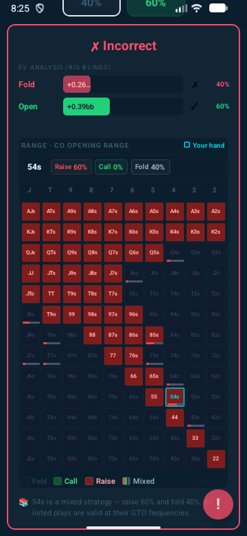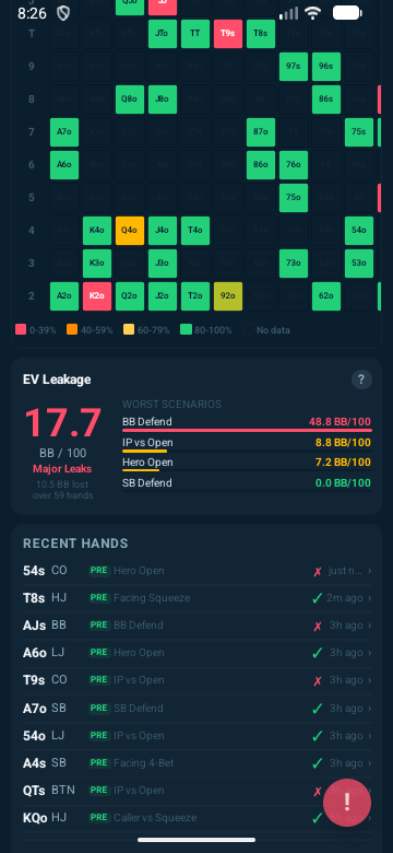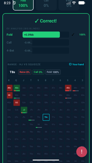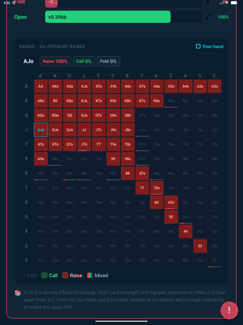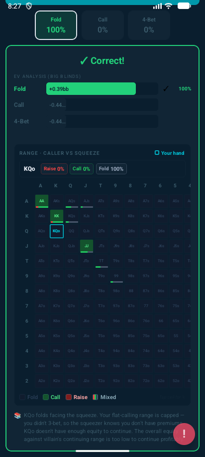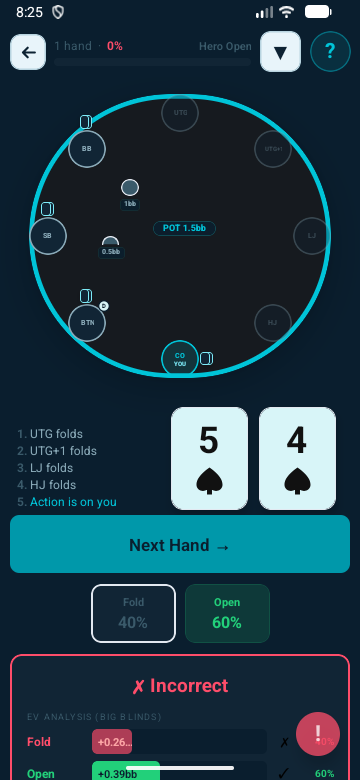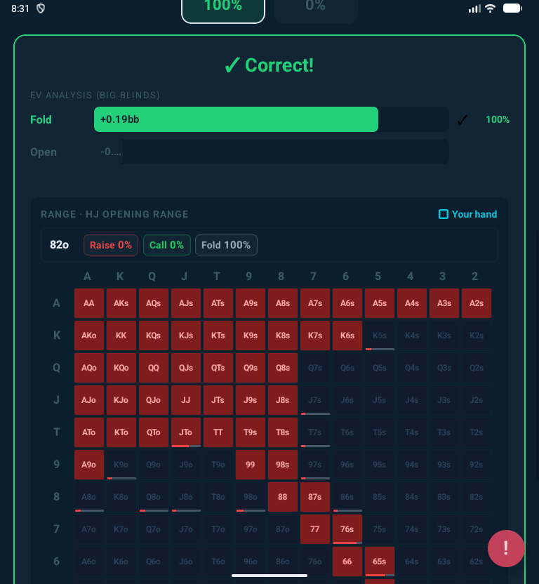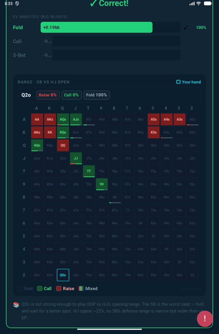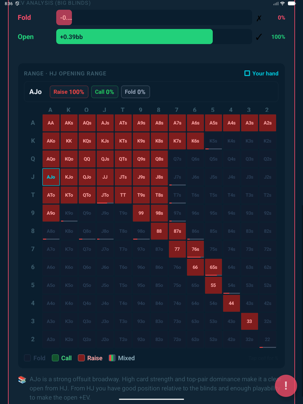 Fold EV text "+0.26bb" clipped to "+0.26..."