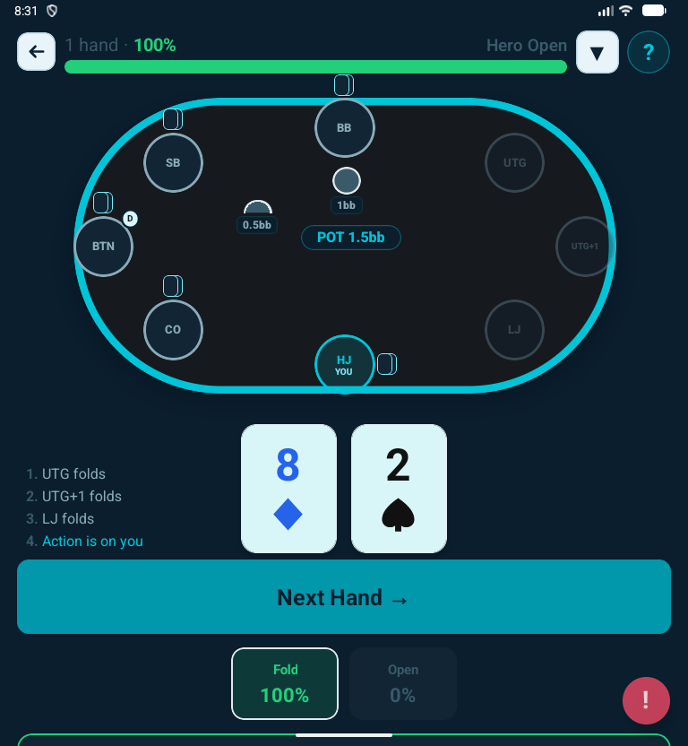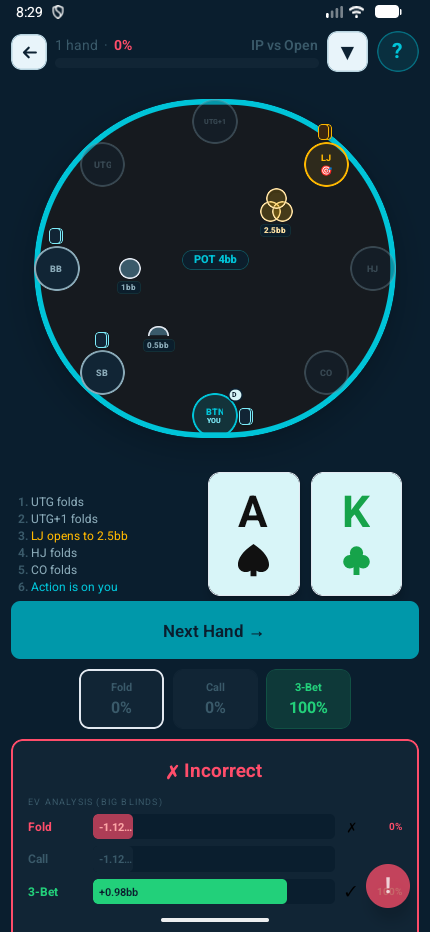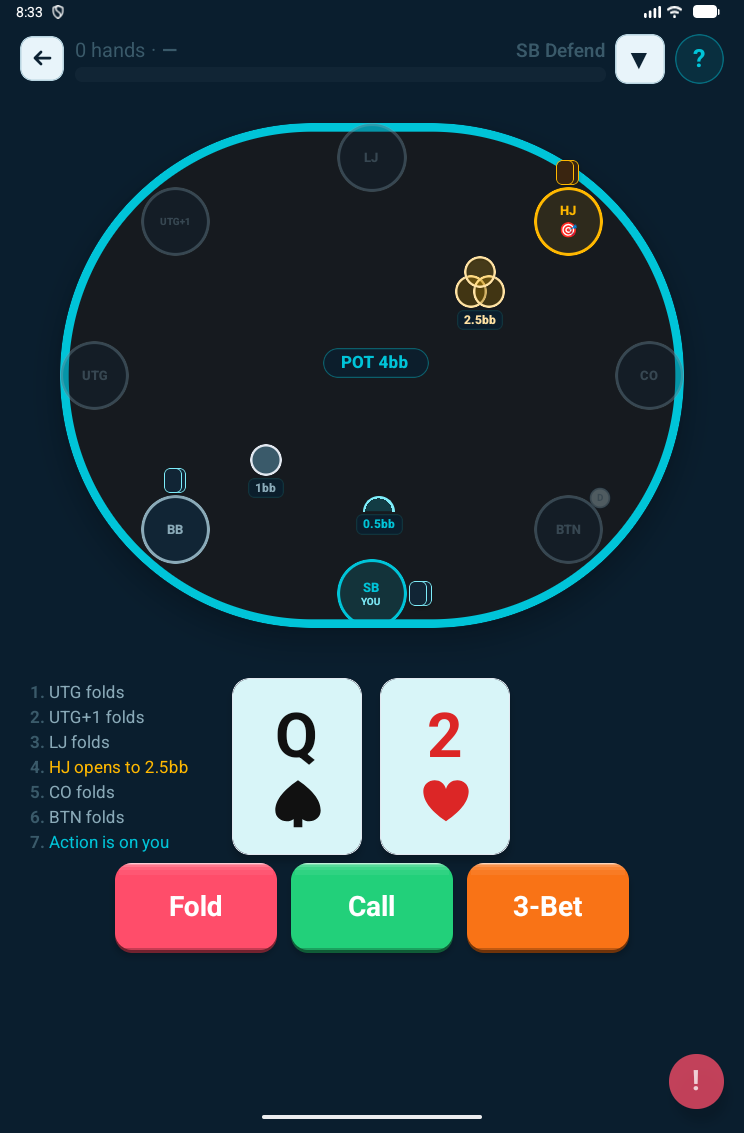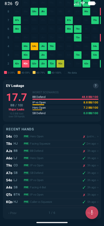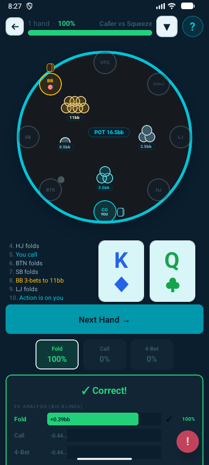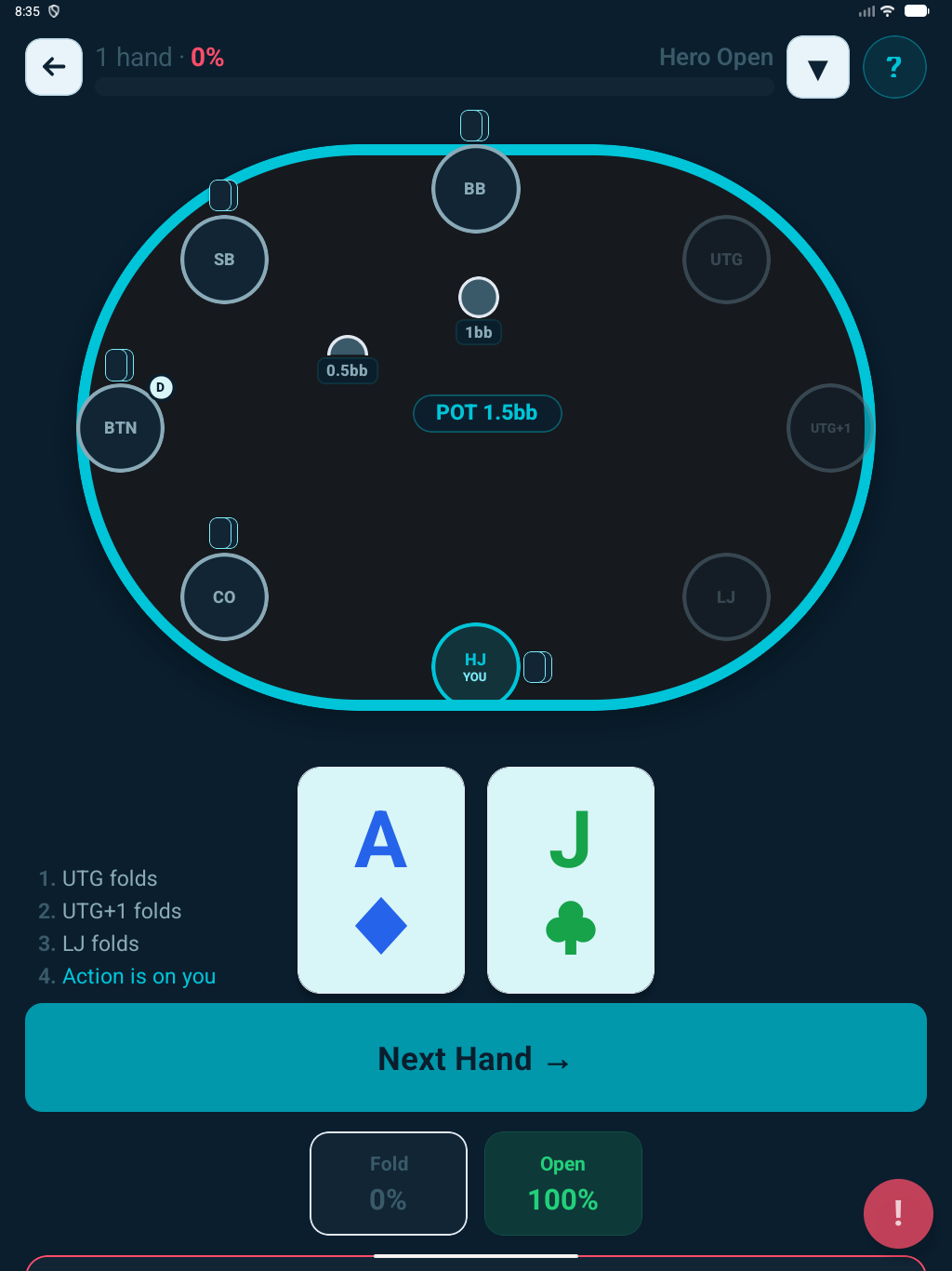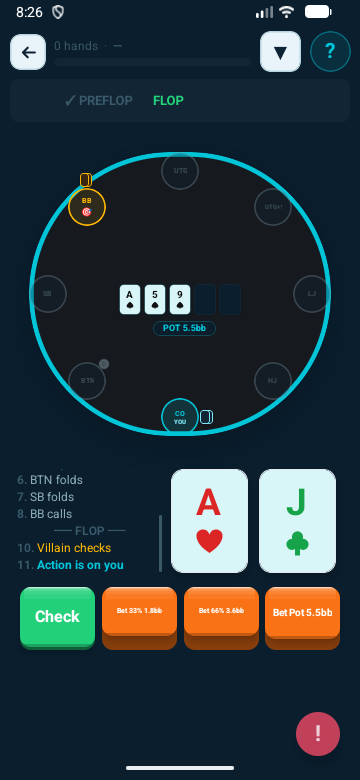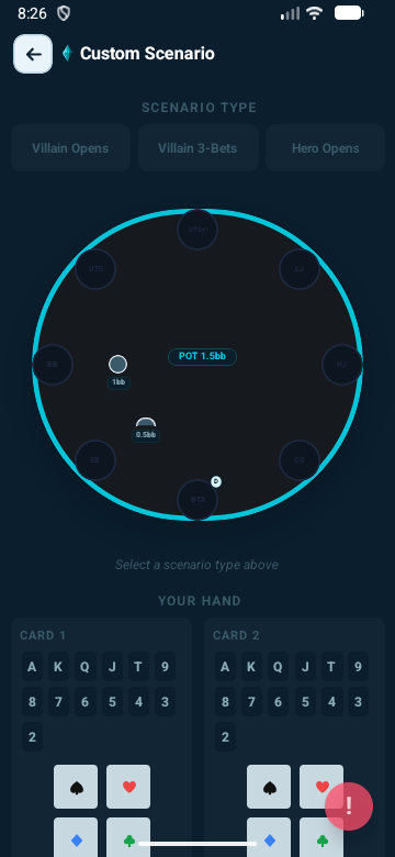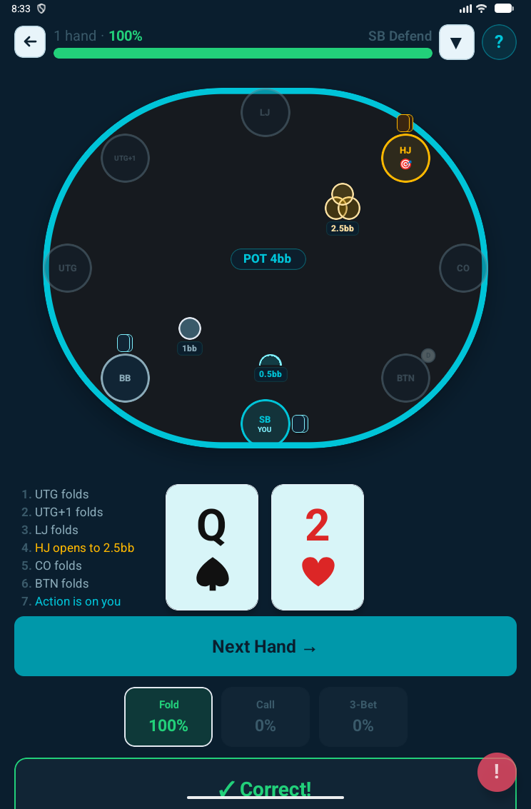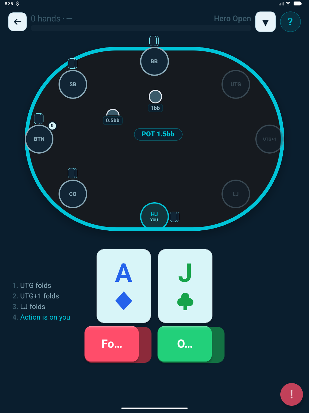 Fold EV text "+0.26bb" clipped to "+0.26..."