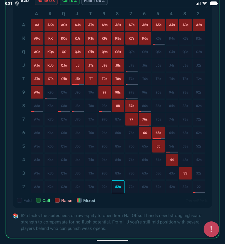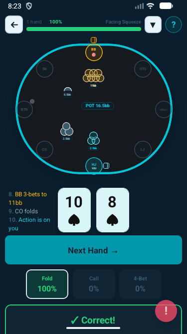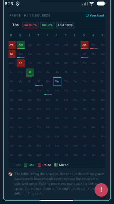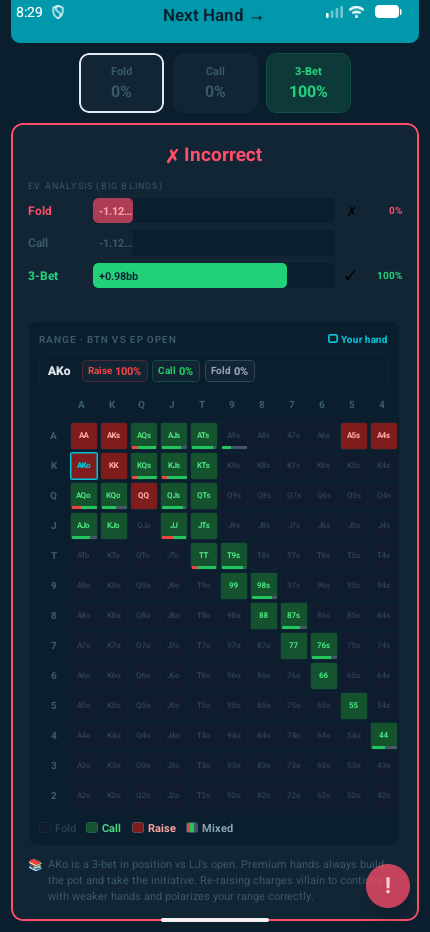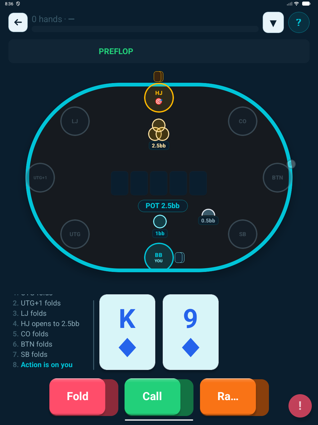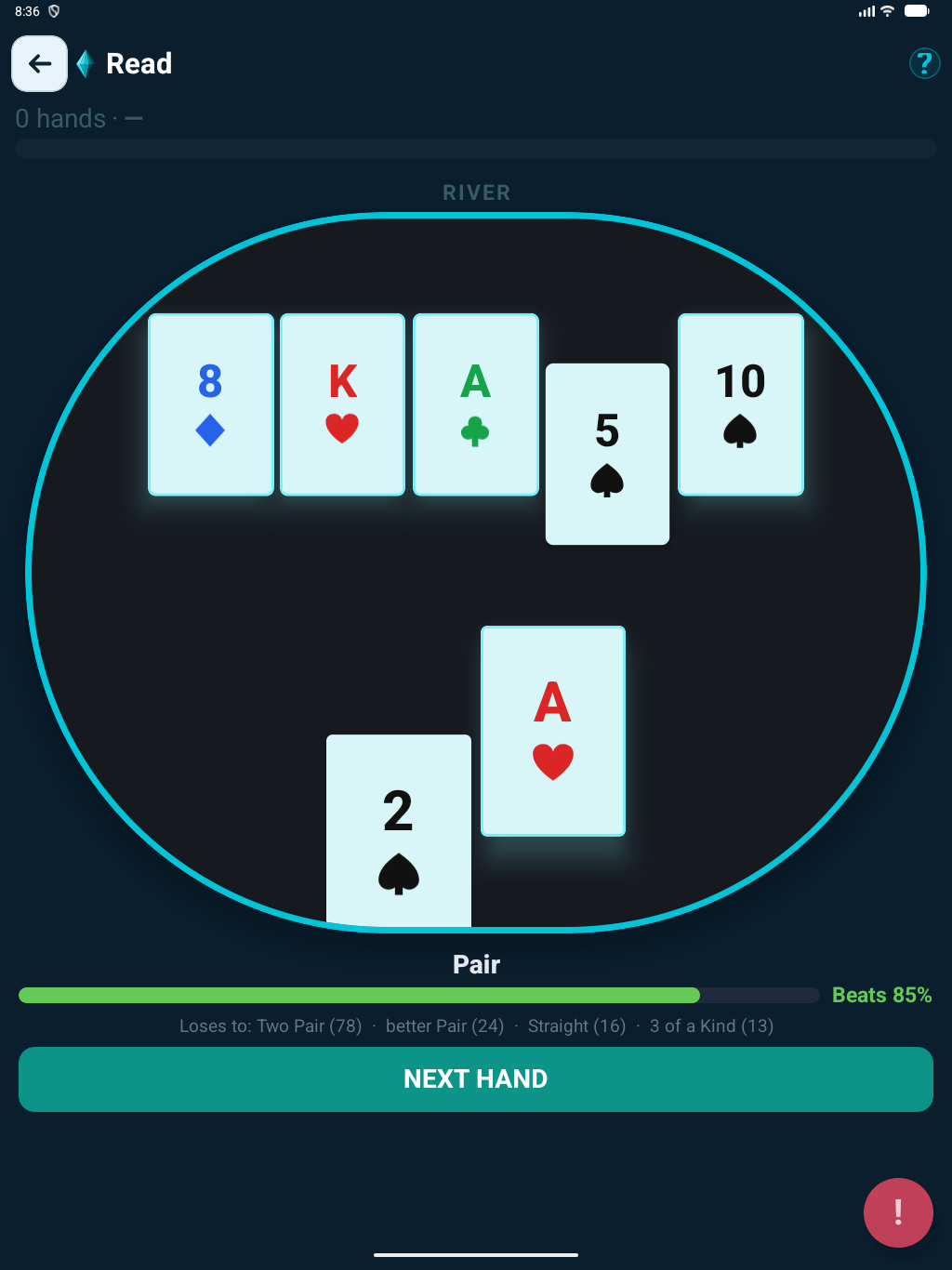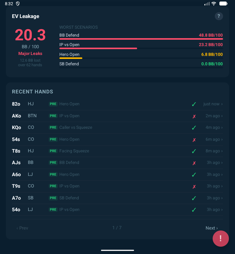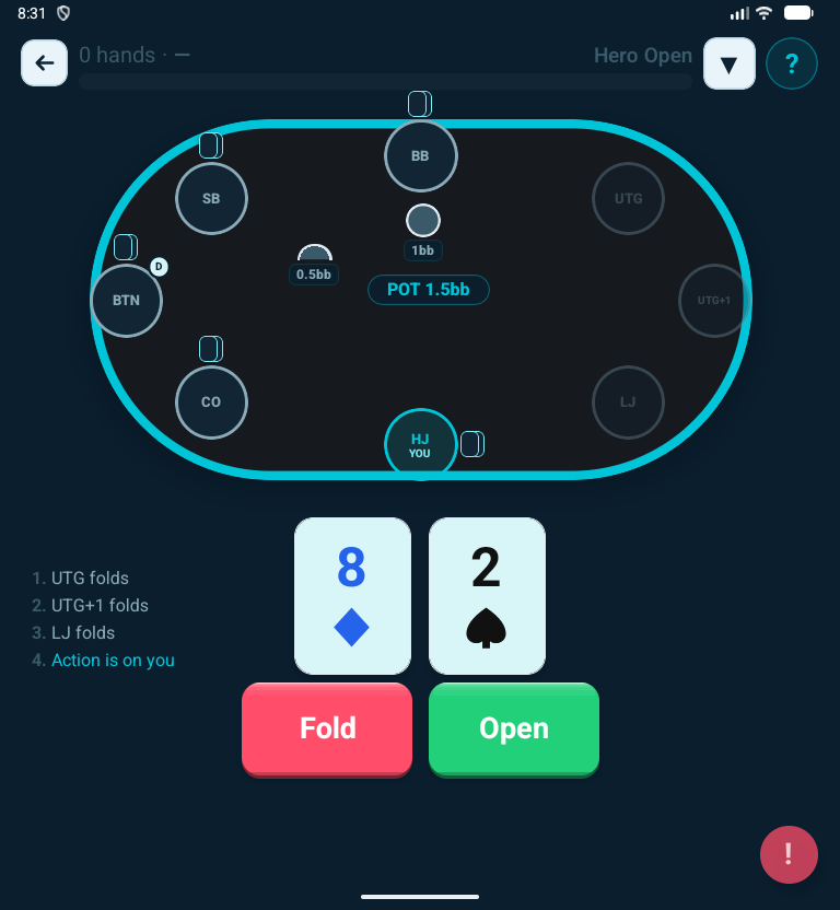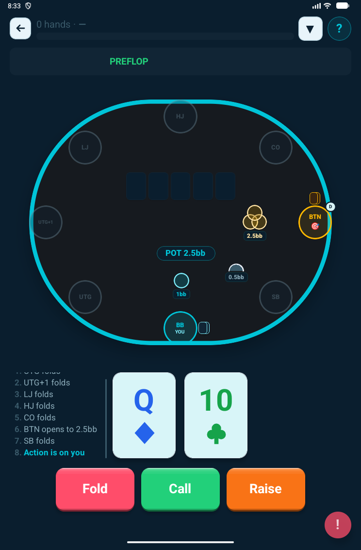 Fold EV text "+0.26bb" clipped to "+0.26..."