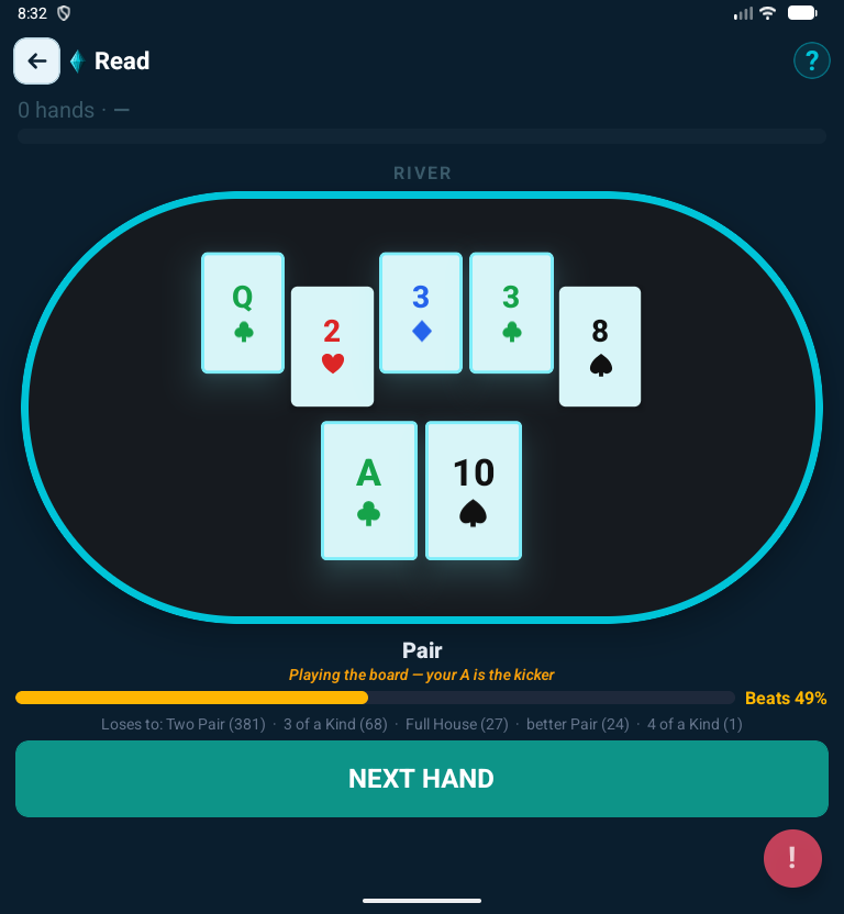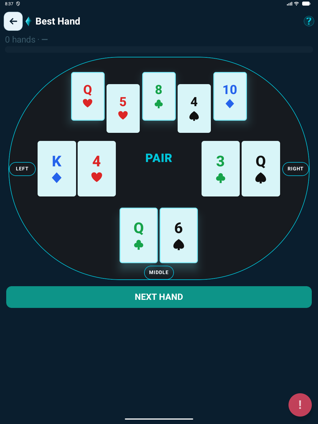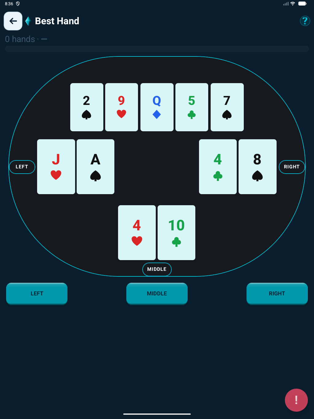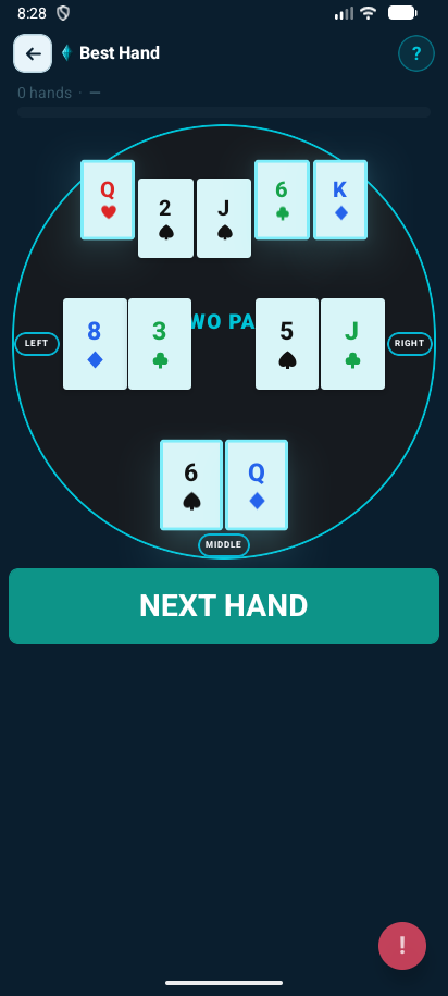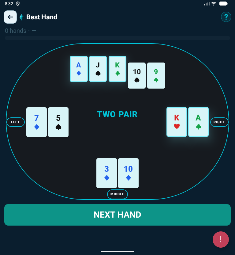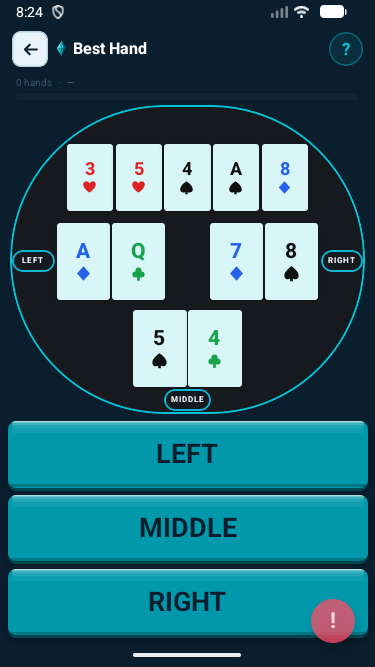 3P112 Best resultWinning-hand name obscured by LEFT/RIGHT player cards on standard phonesNeeds review