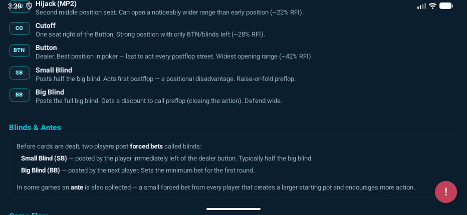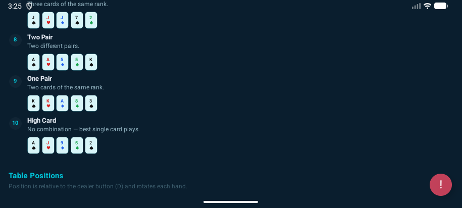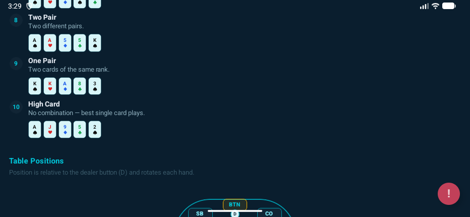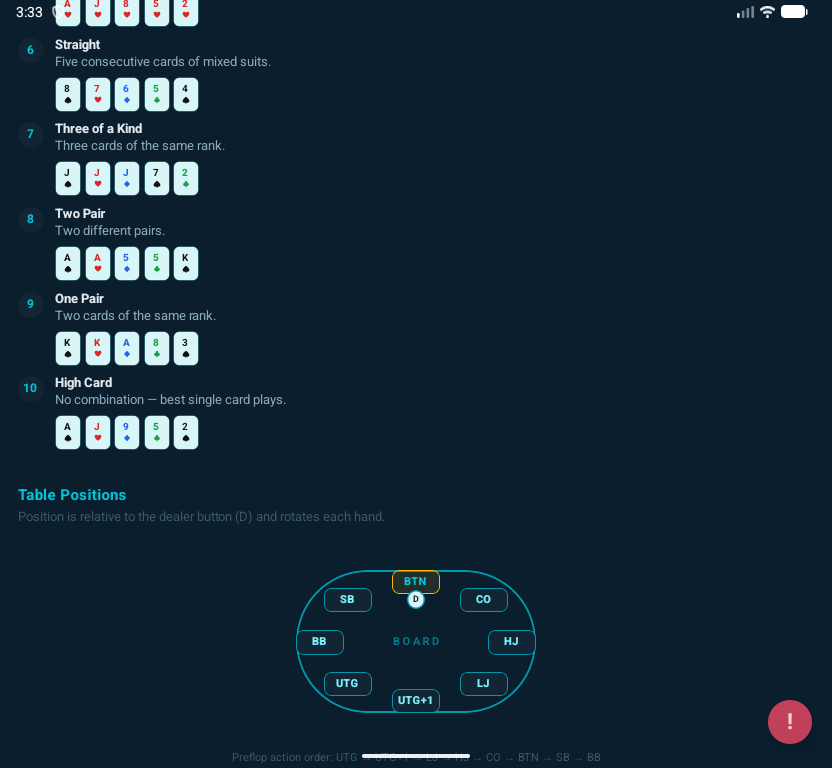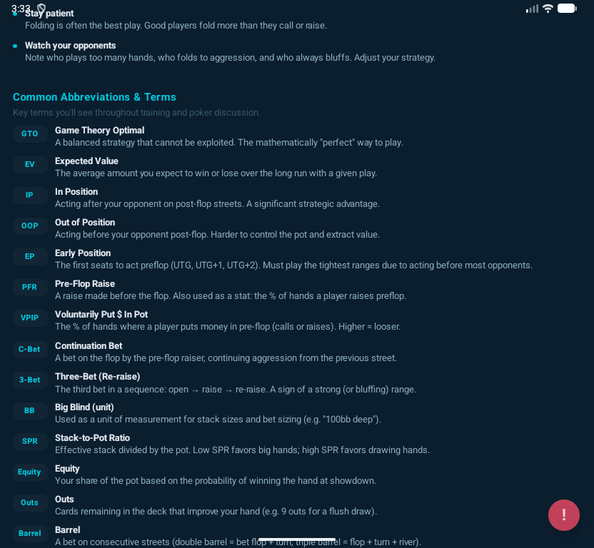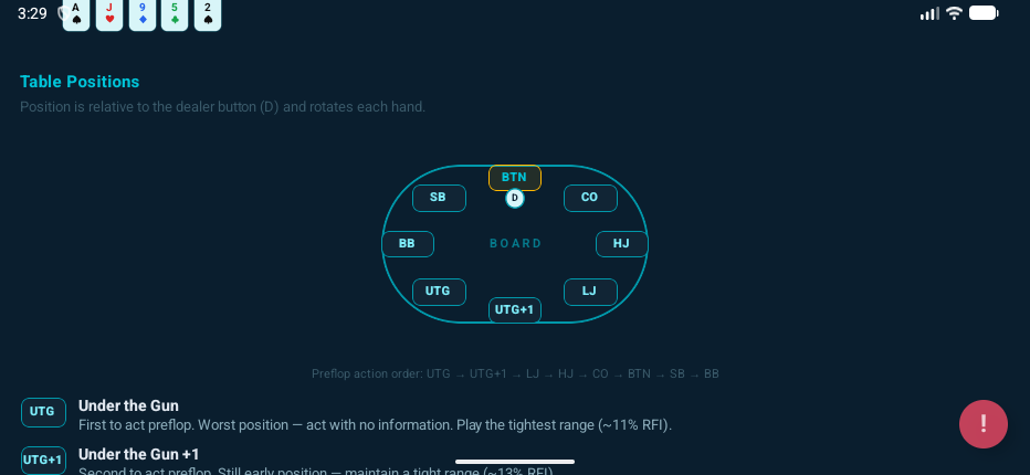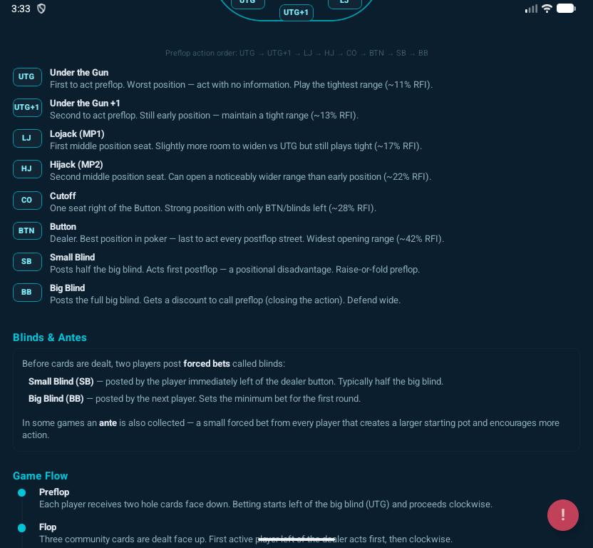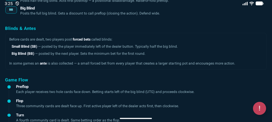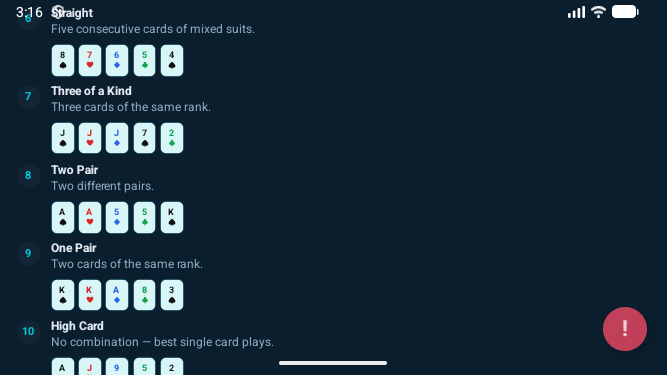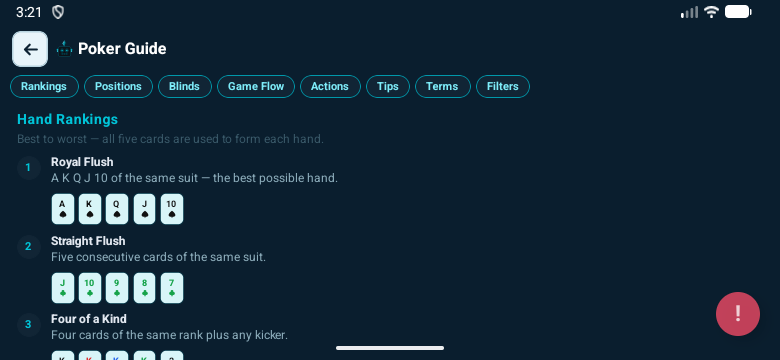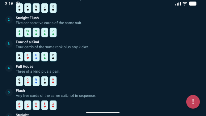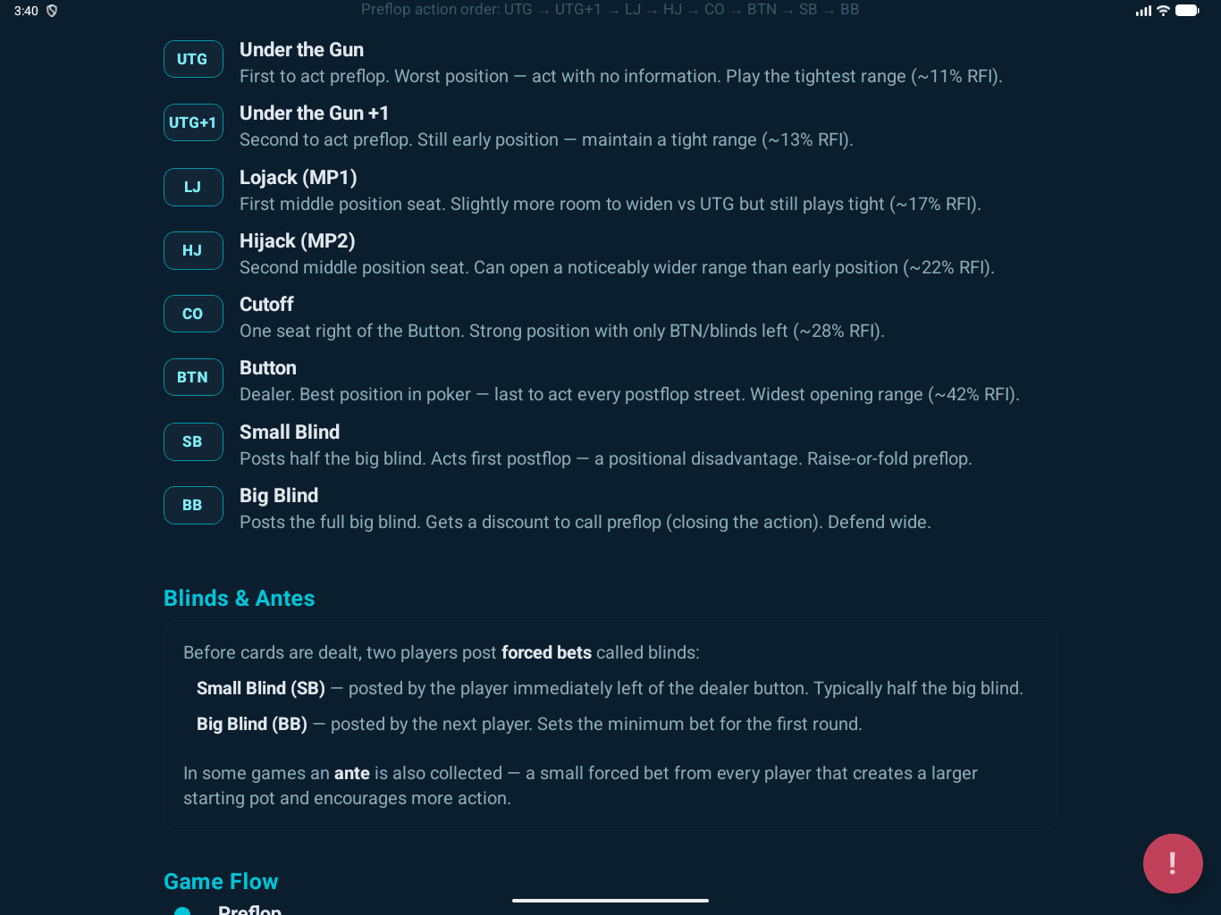 Poker Guide tablet landscape — content left-aligned, empty right — affected: