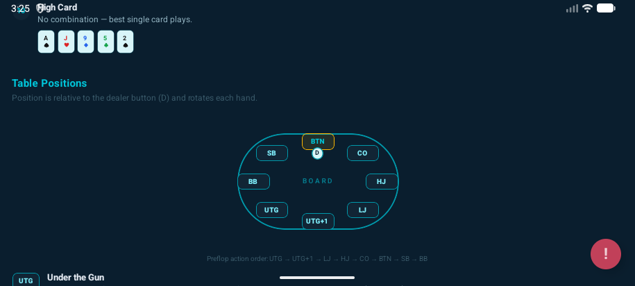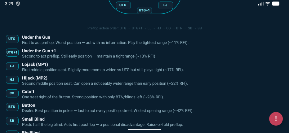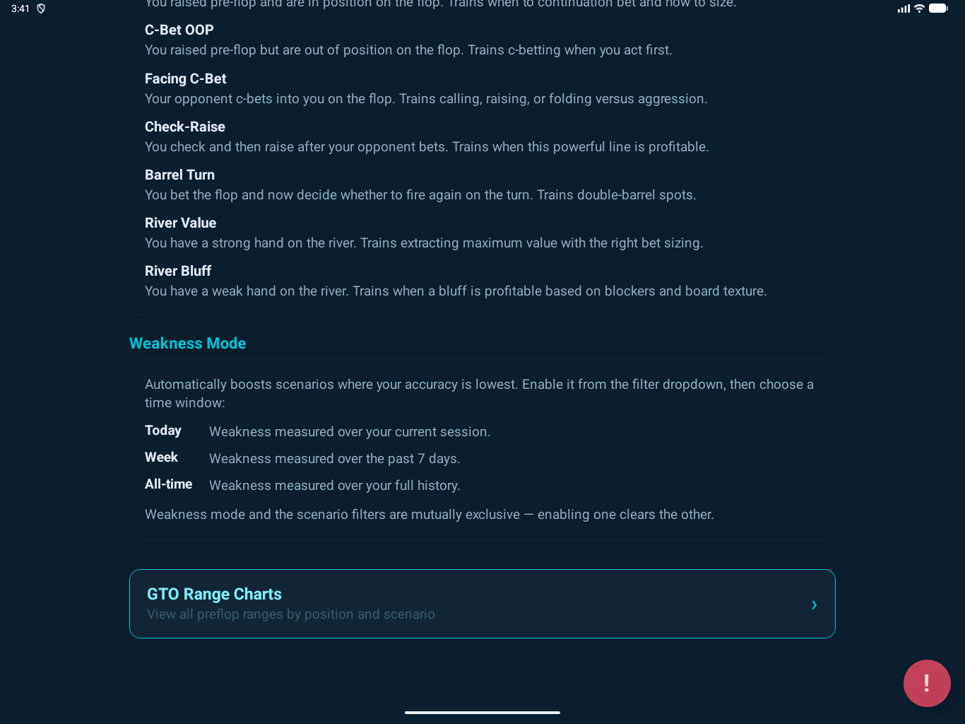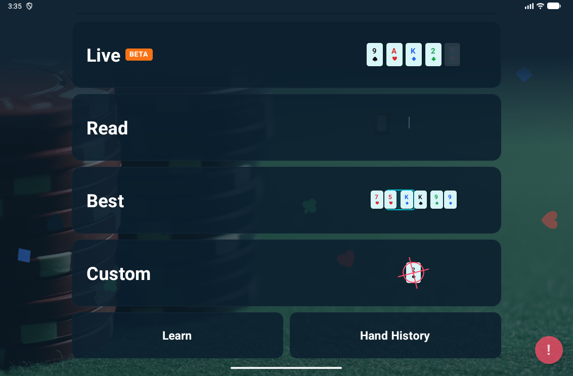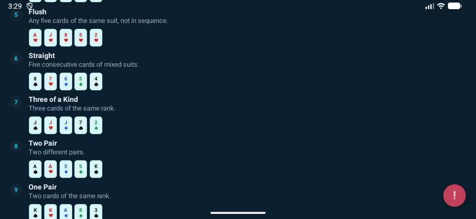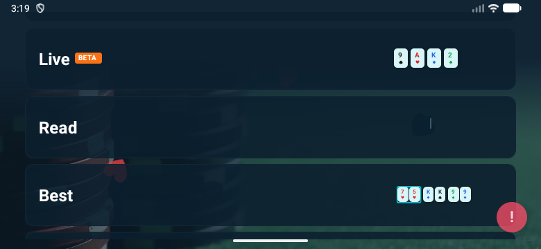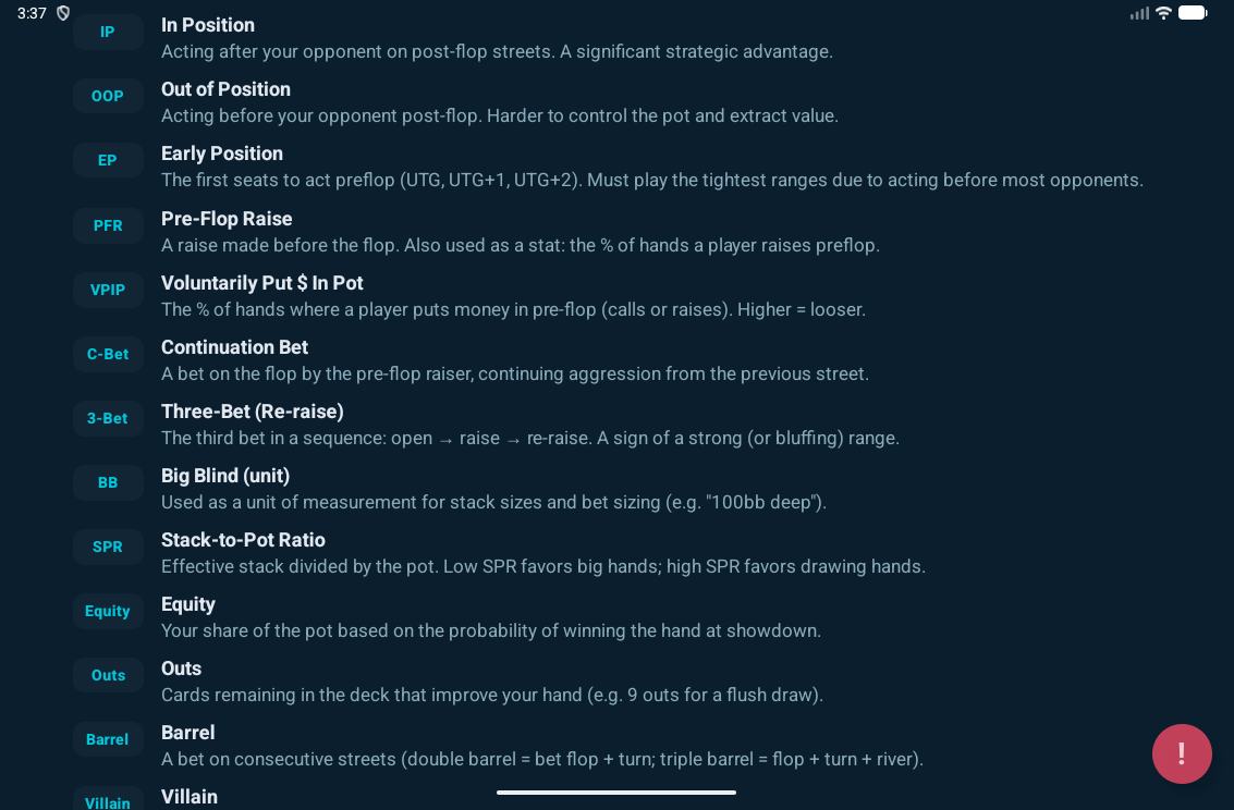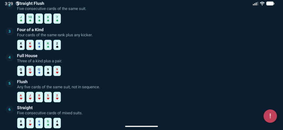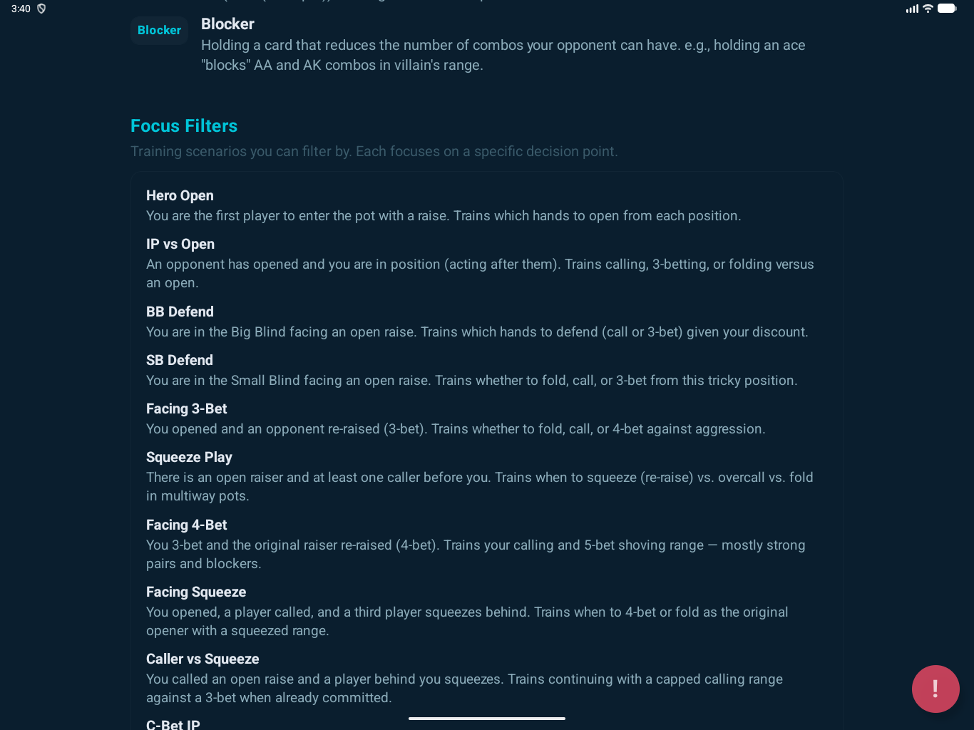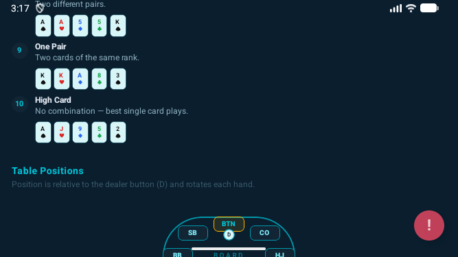 Poker Guide tablet landscape — content left-aligned, empty right — affected: