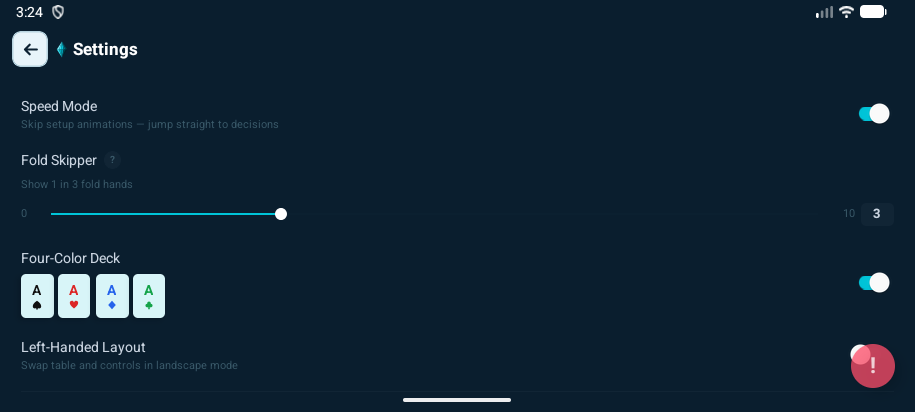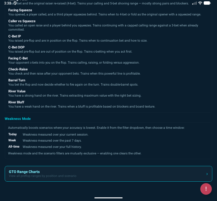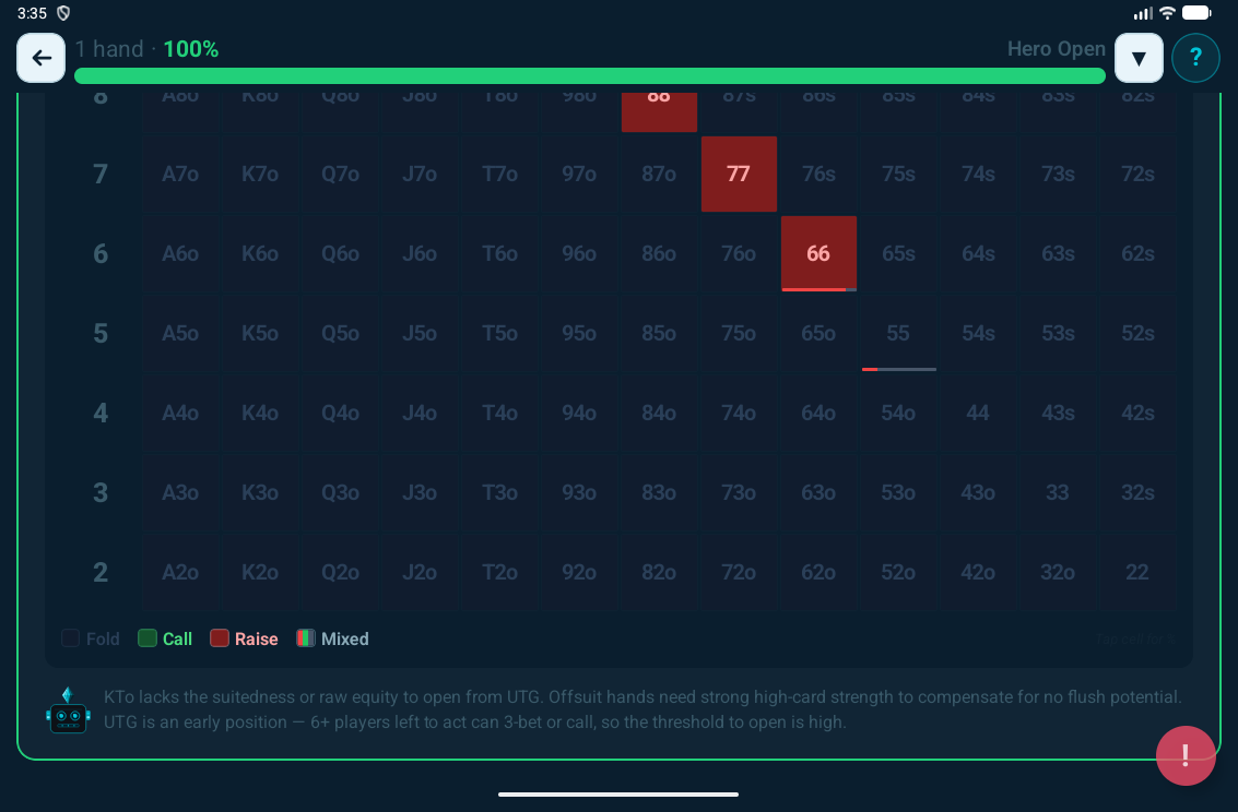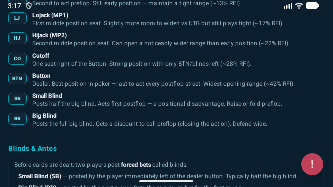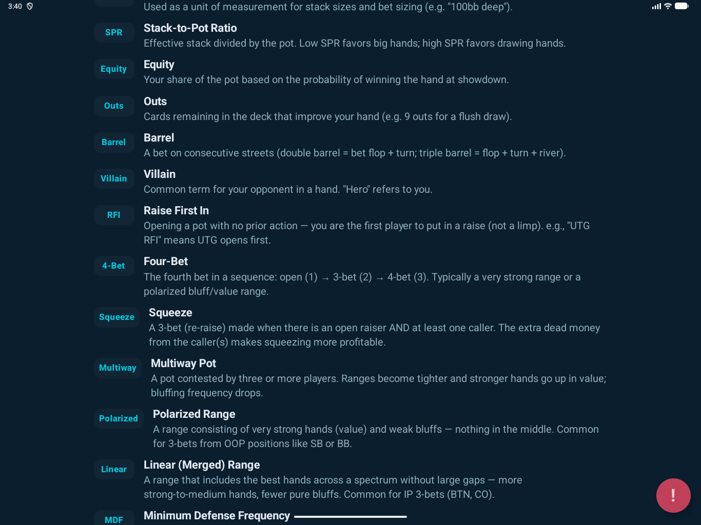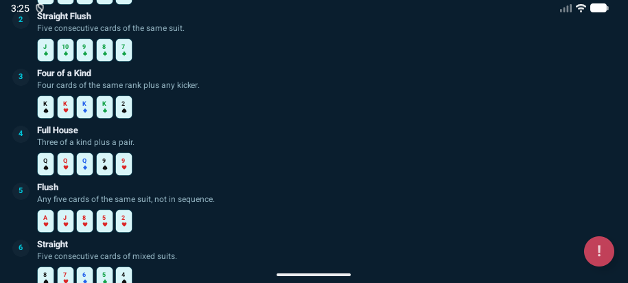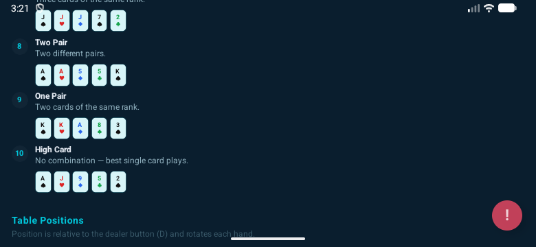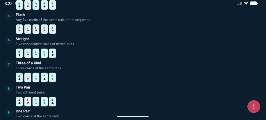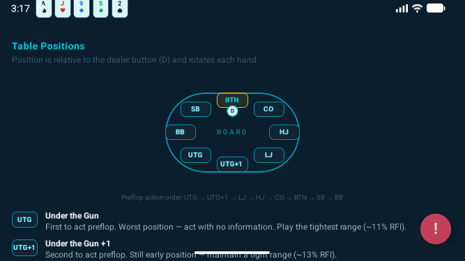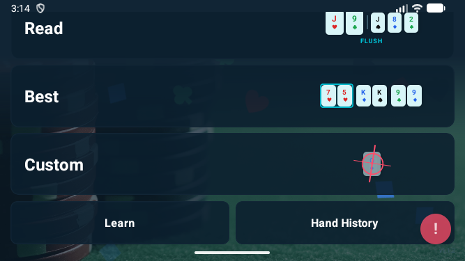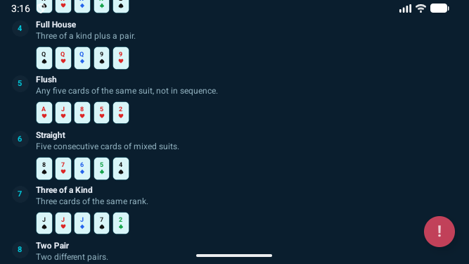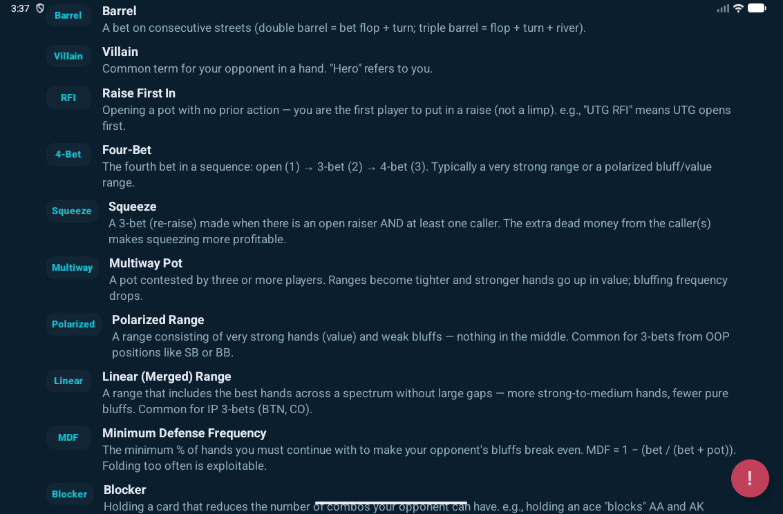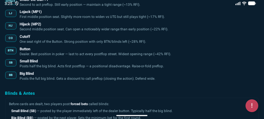 Poker Guide tablet landscape — content left-aligned, empty right — affected: