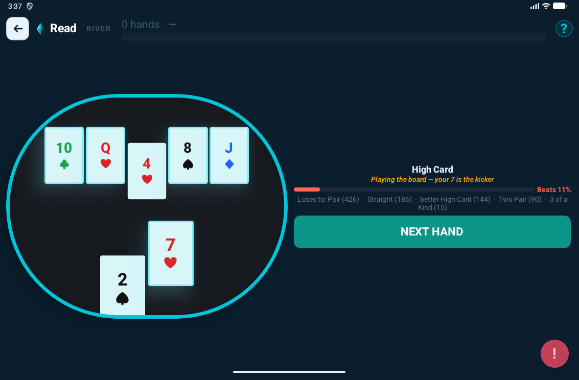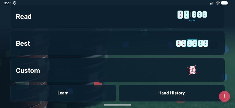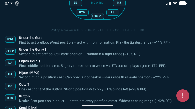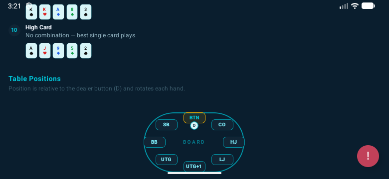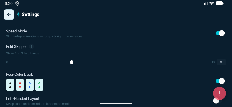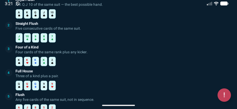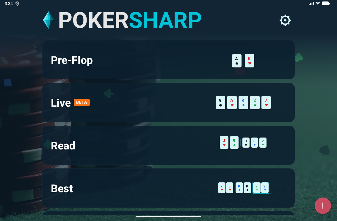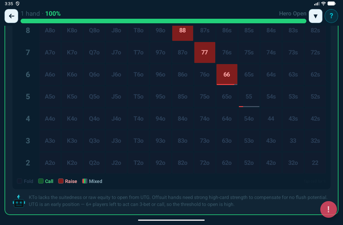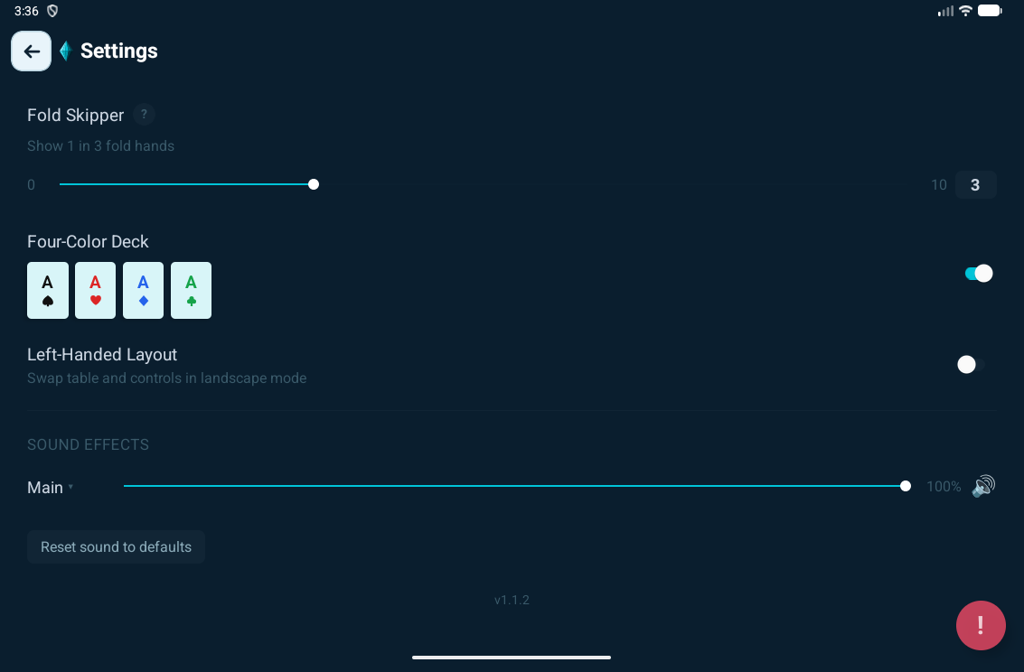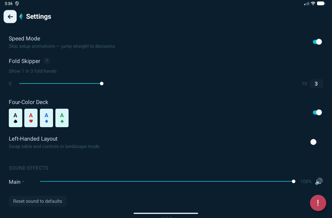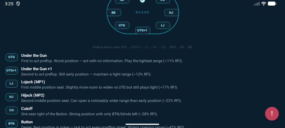 Poker Guide tablet landscape — content left-aligned, empty right — affected: