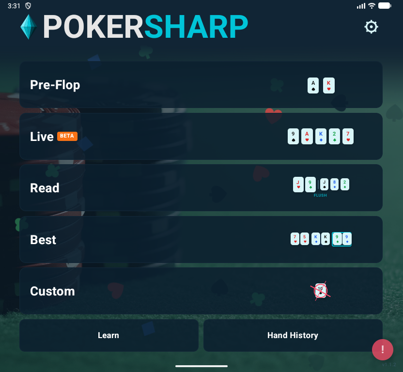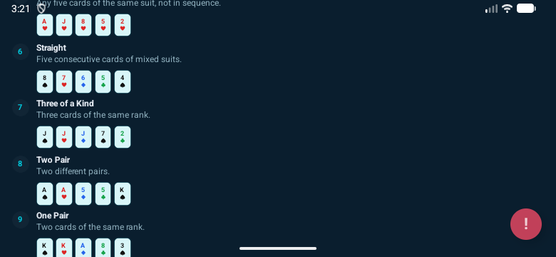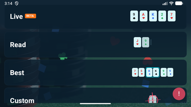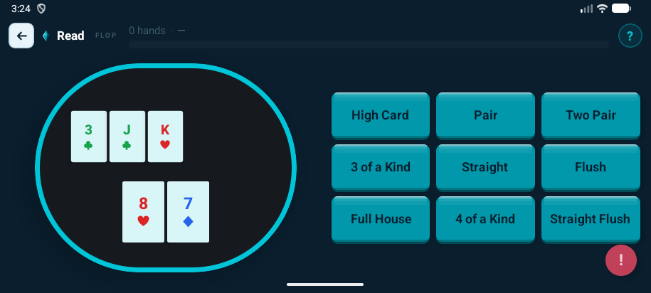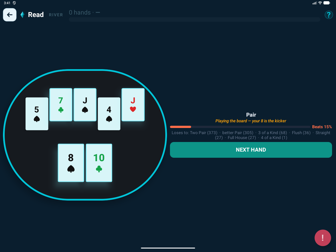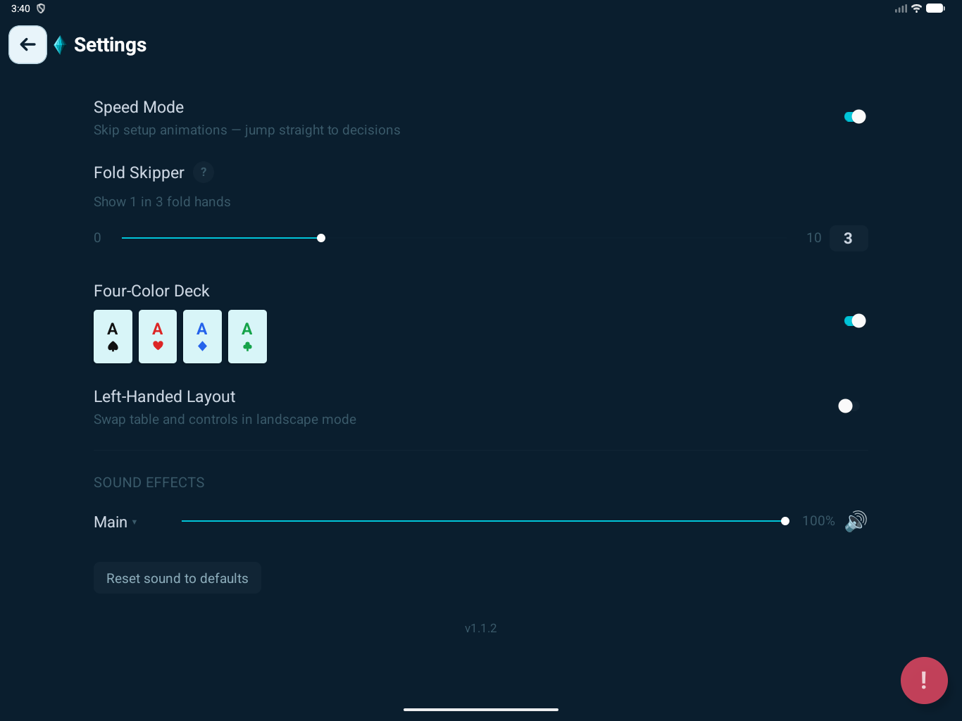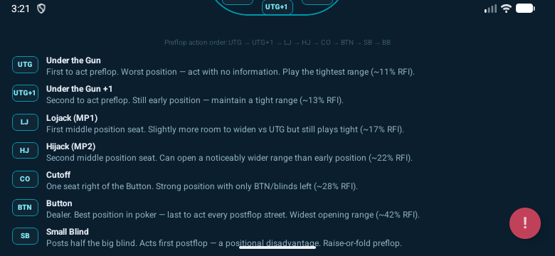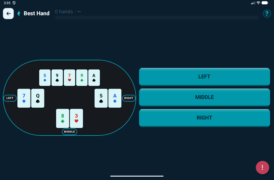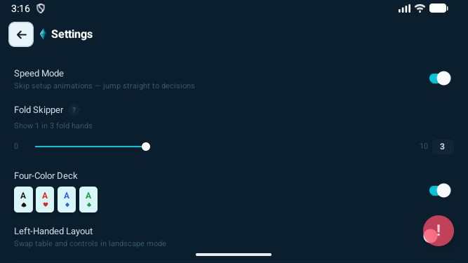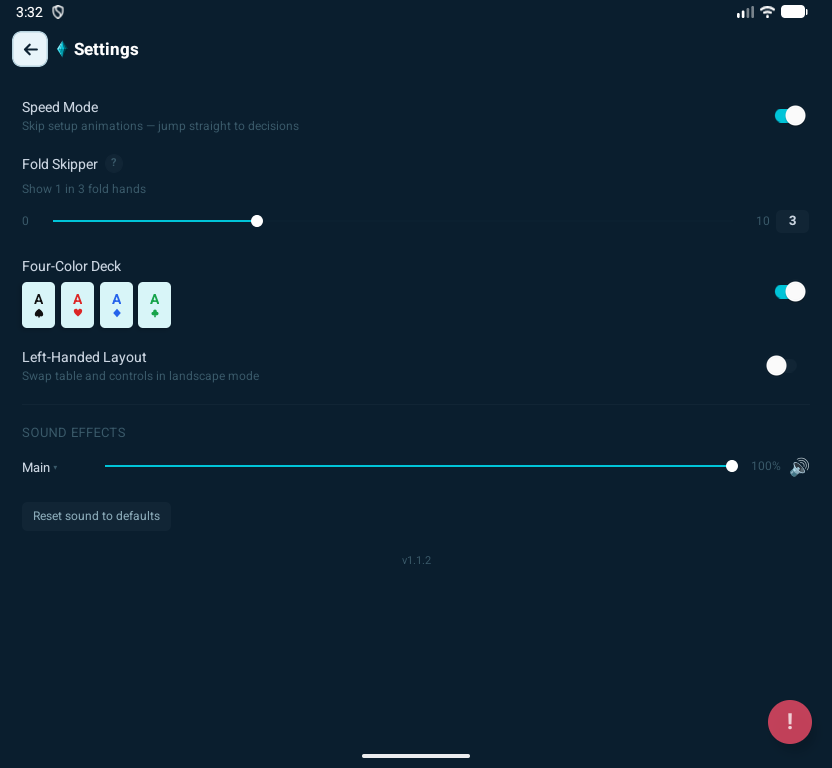 Poker Guide tablet landscape — content left-aligned, empty right — affected: