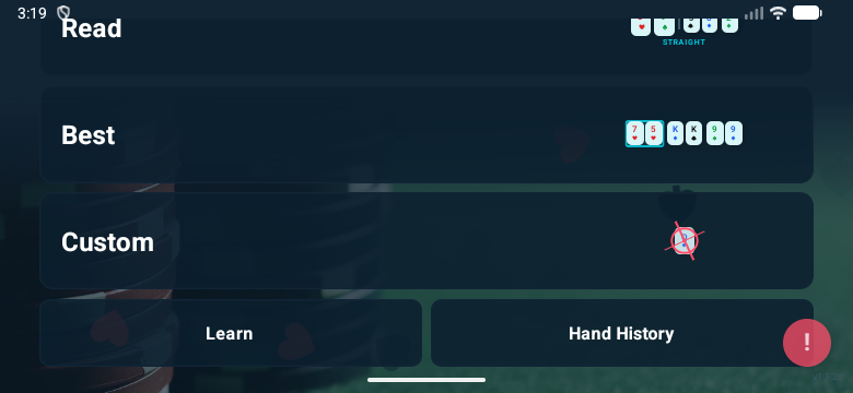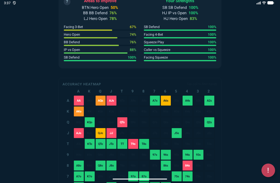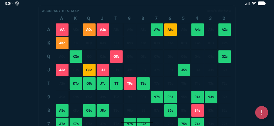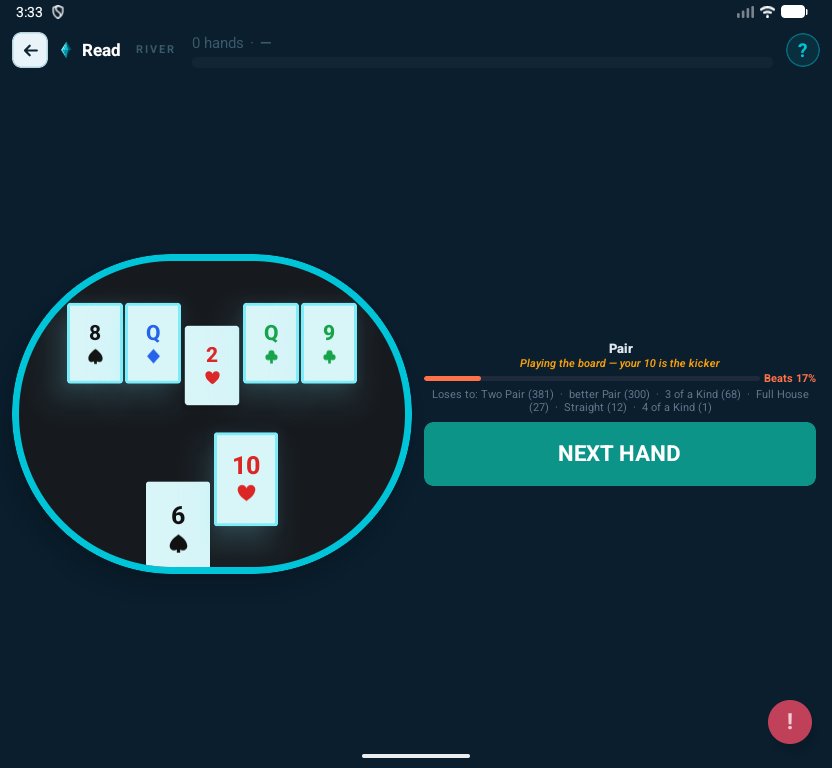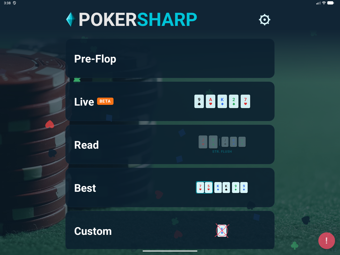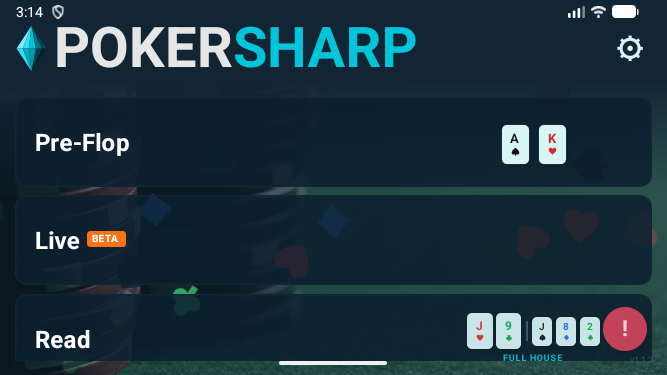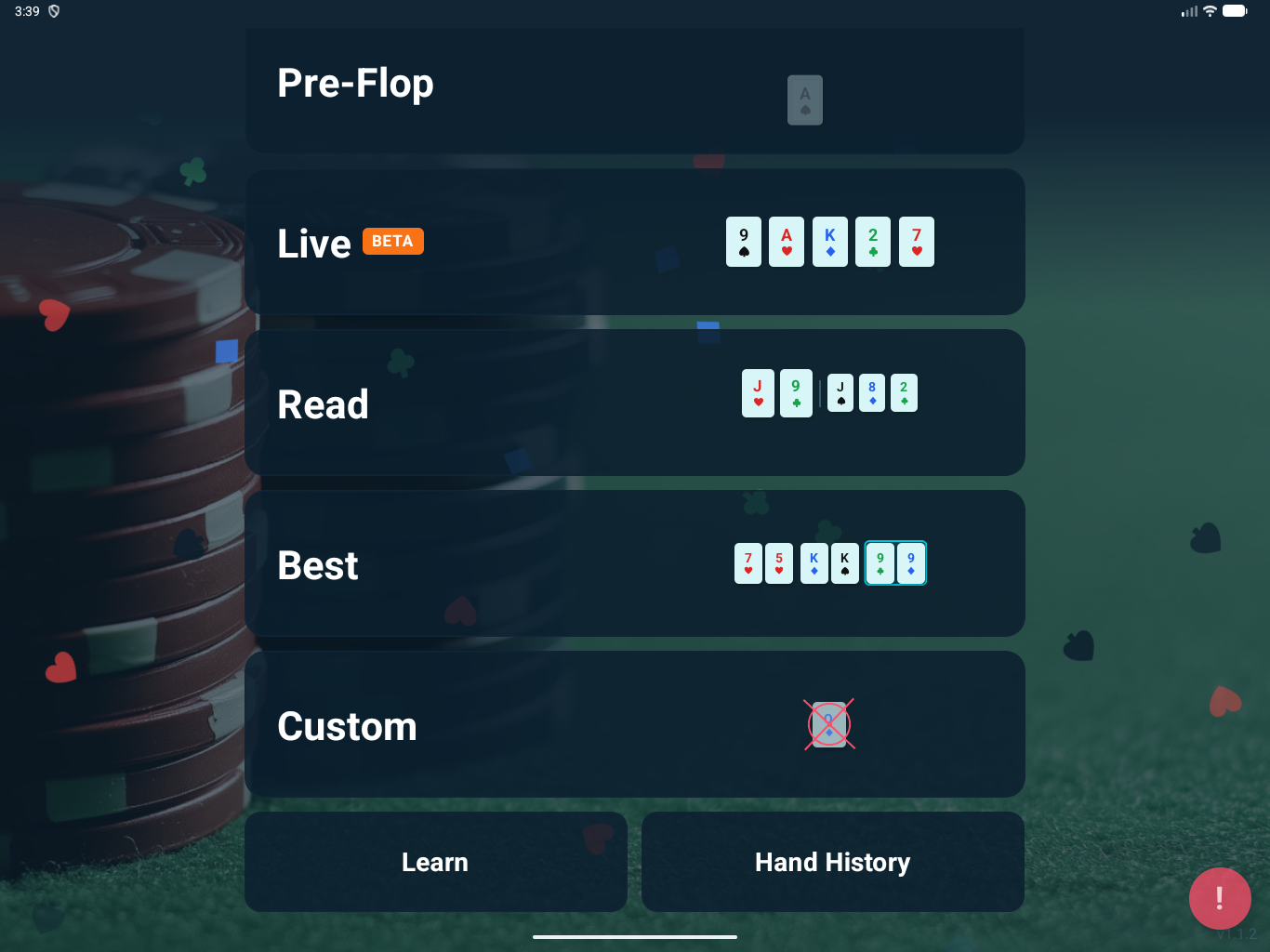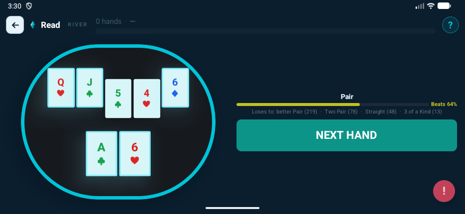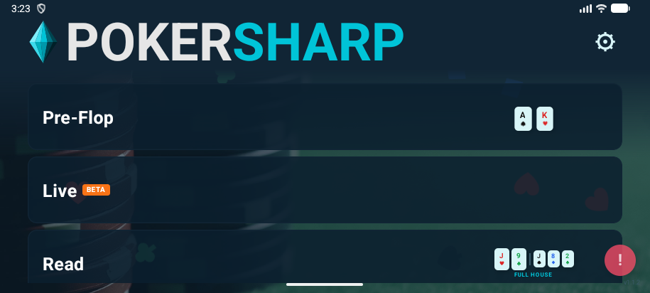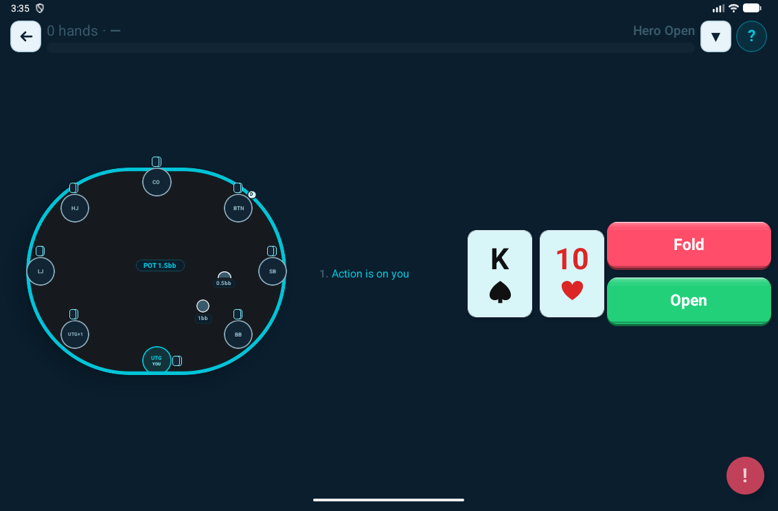 Poker Guide tablet landscape — content left-aligned, empty right — affected: