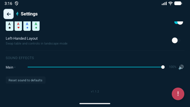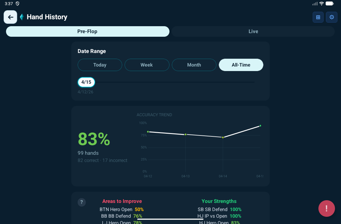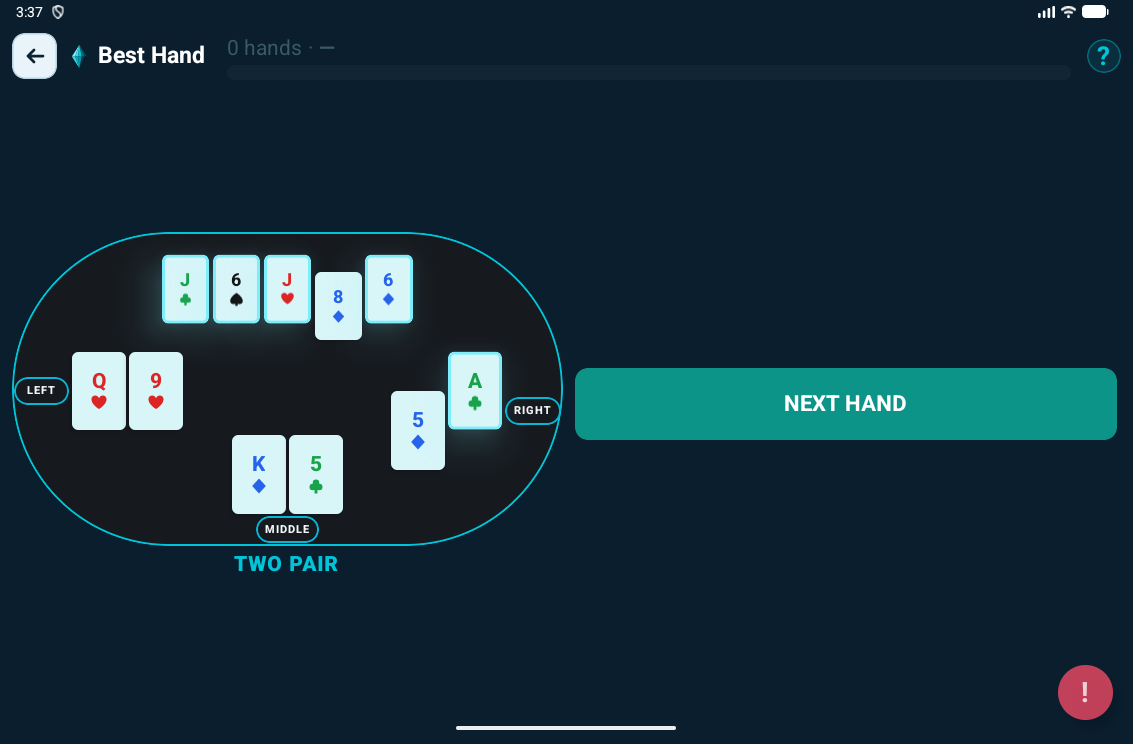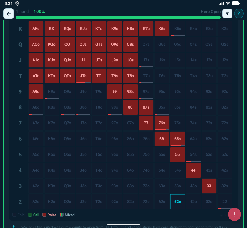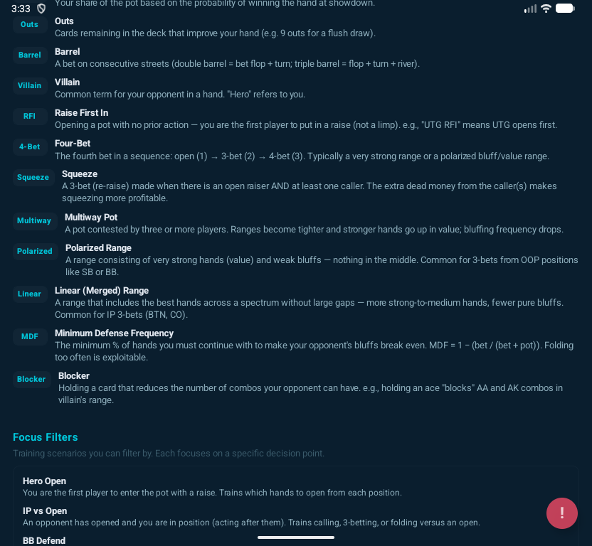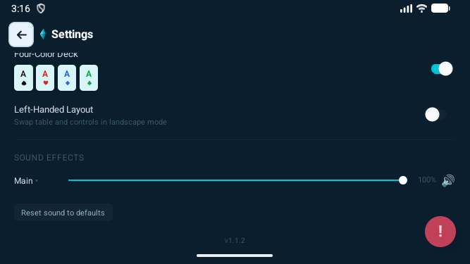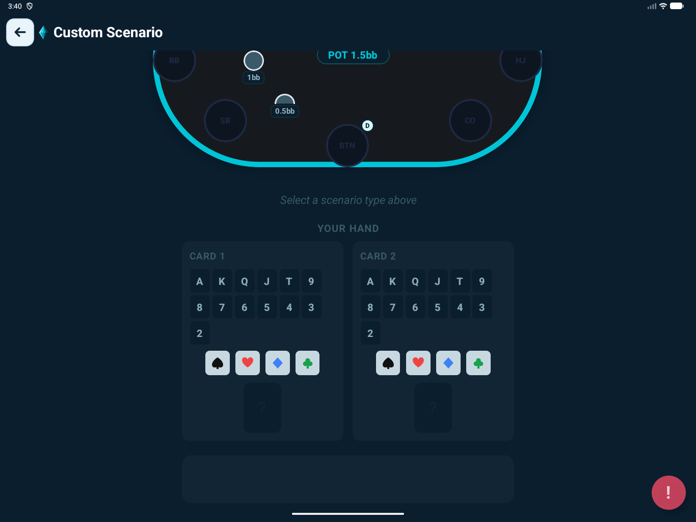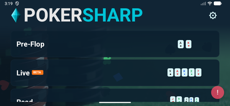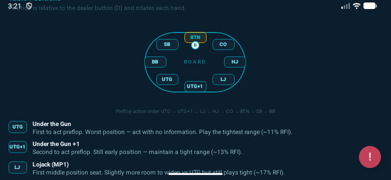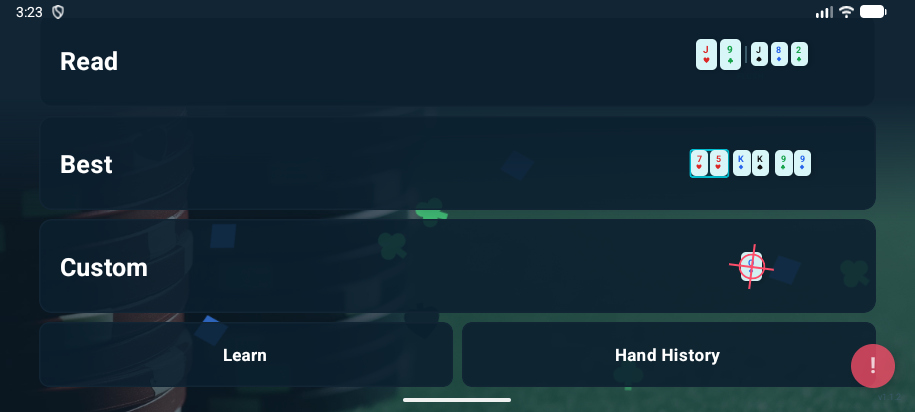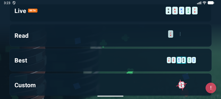 Poker Guide tablet landscape — content left-aligned, empty right — affected: