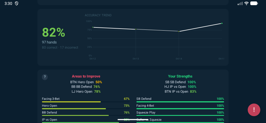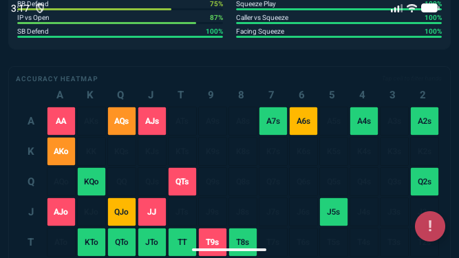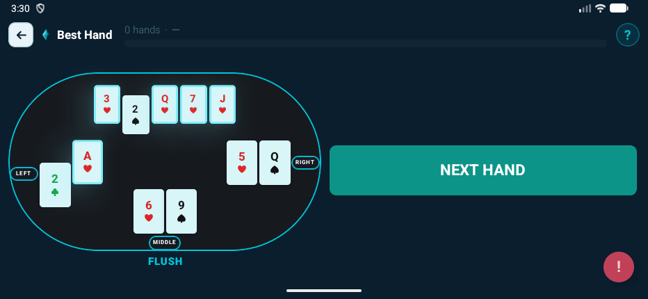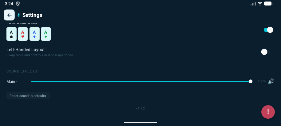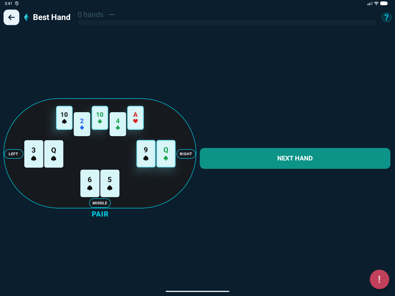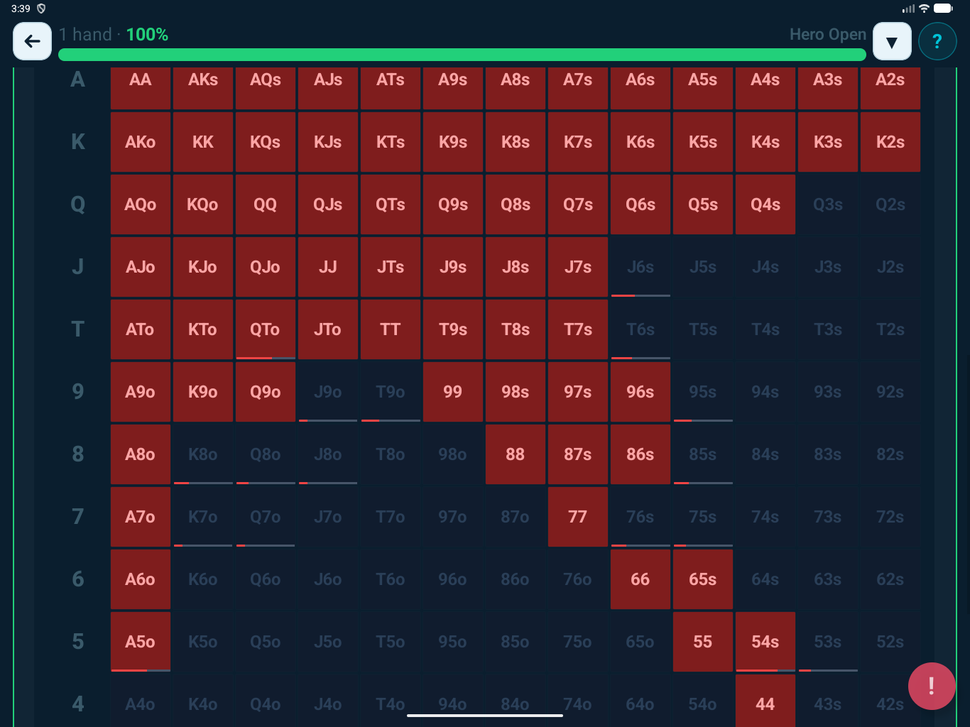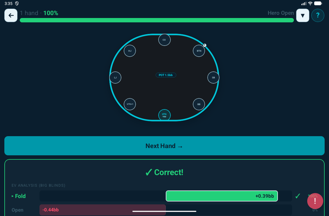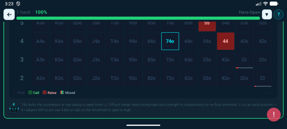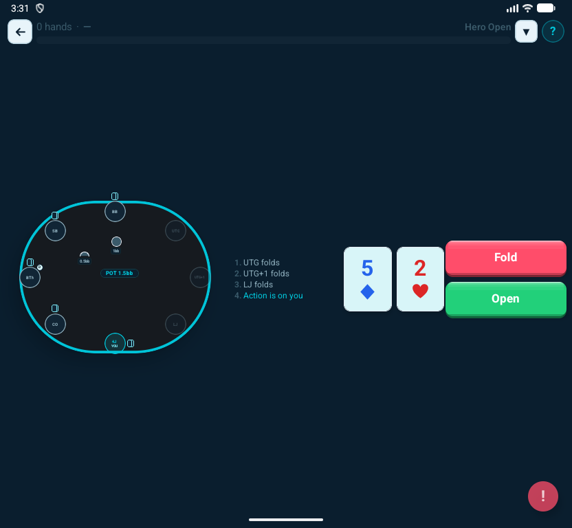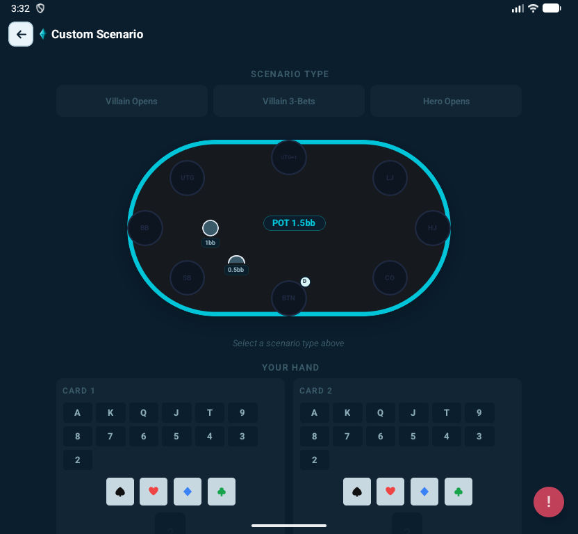 Poker Guide tablet landscape — content left-aligned, empty right — affected: