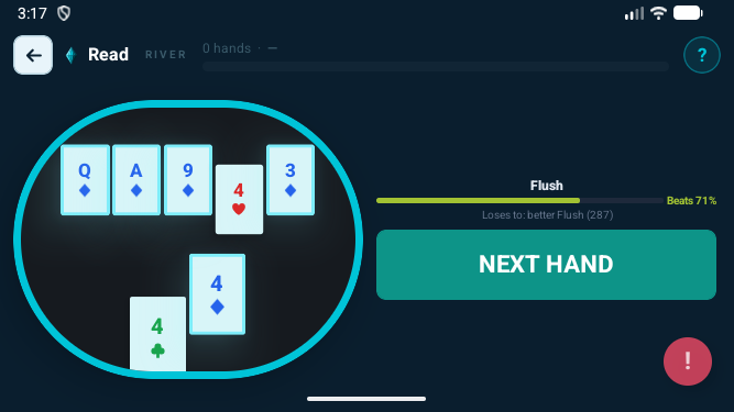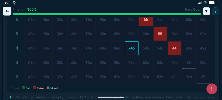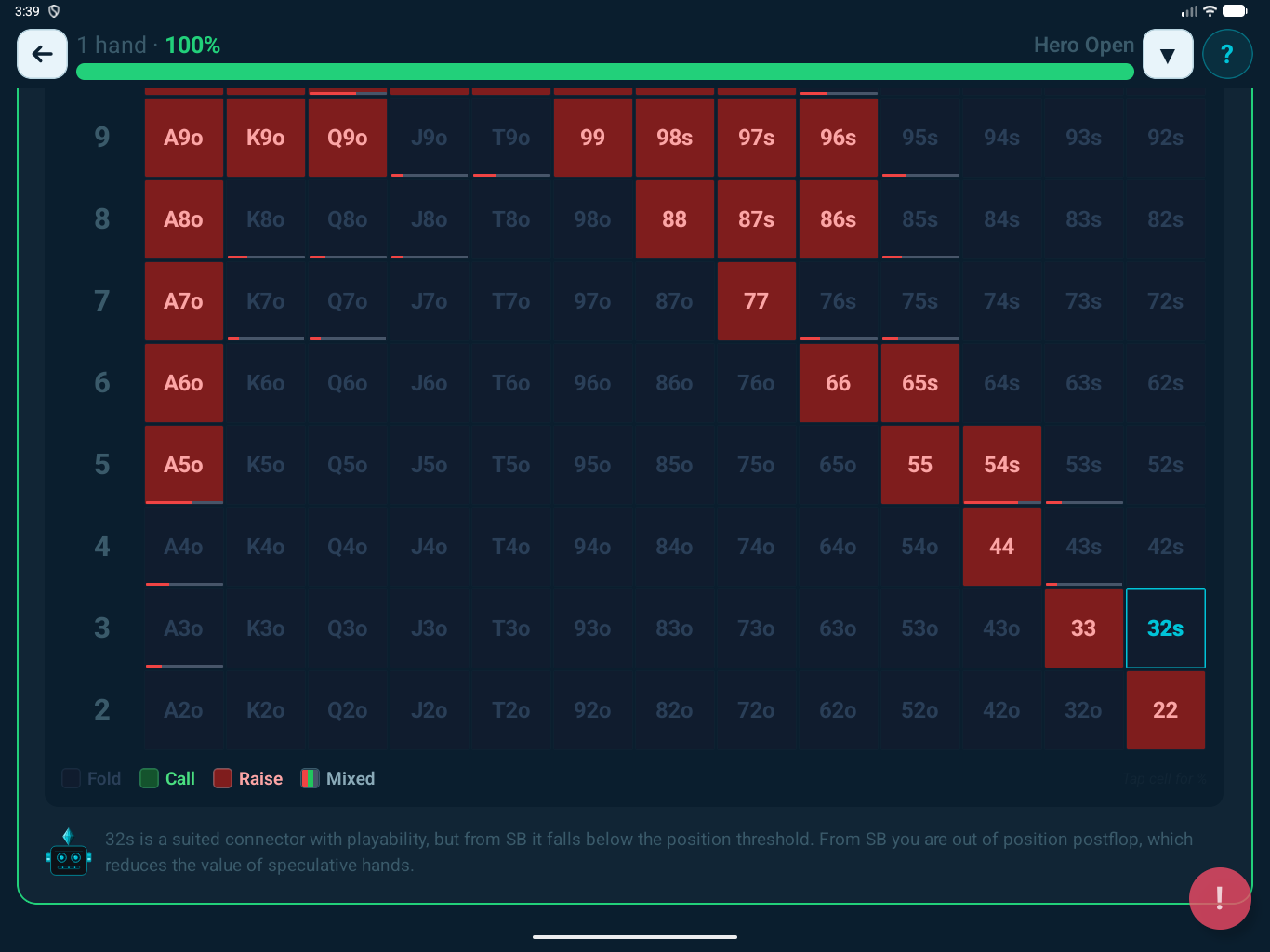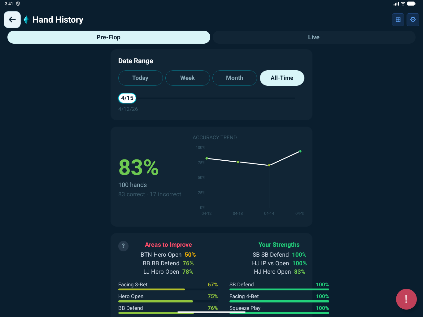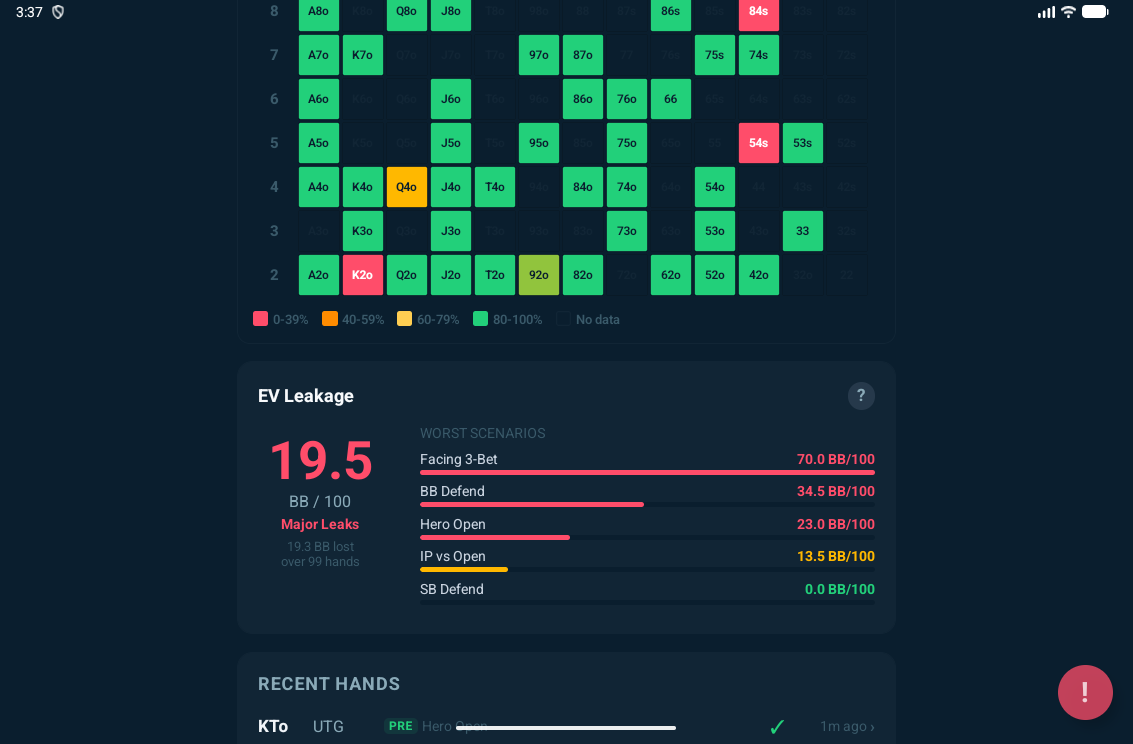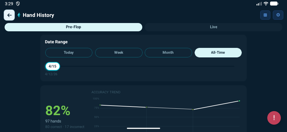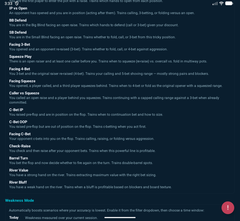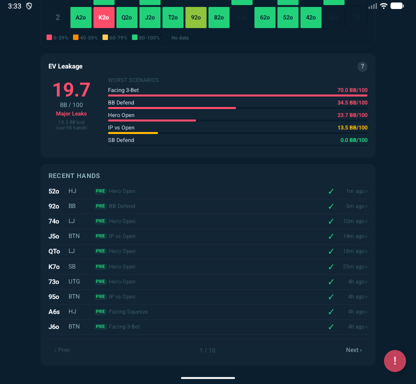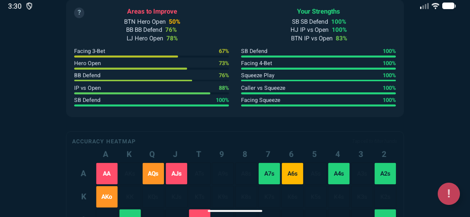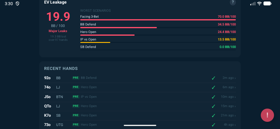 Poker Guide tablet landscape — content left-aligned, empty right — affected: