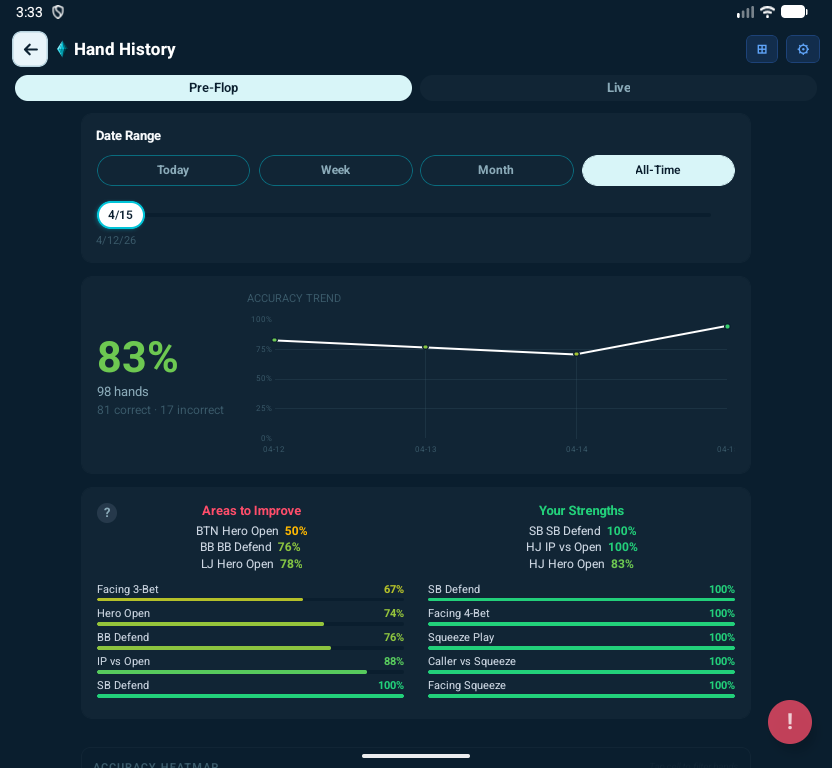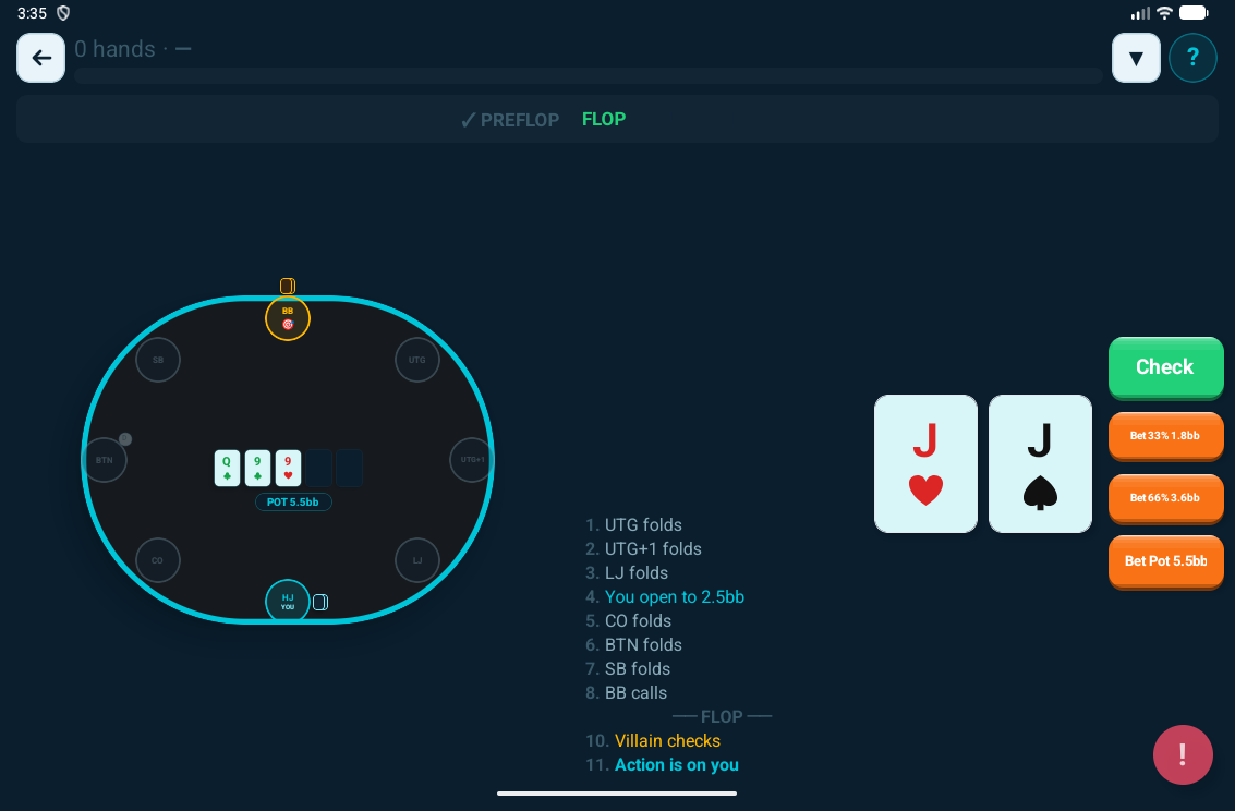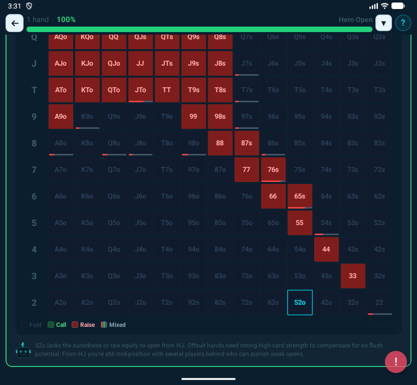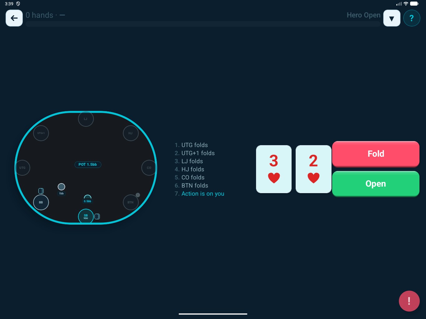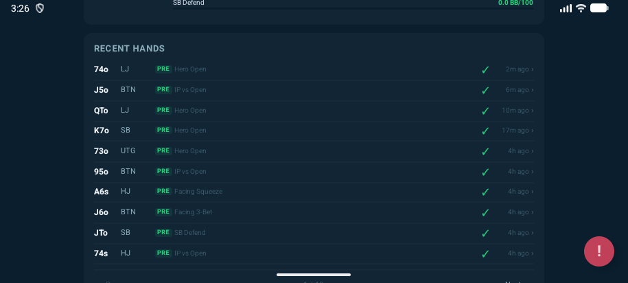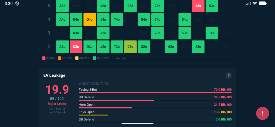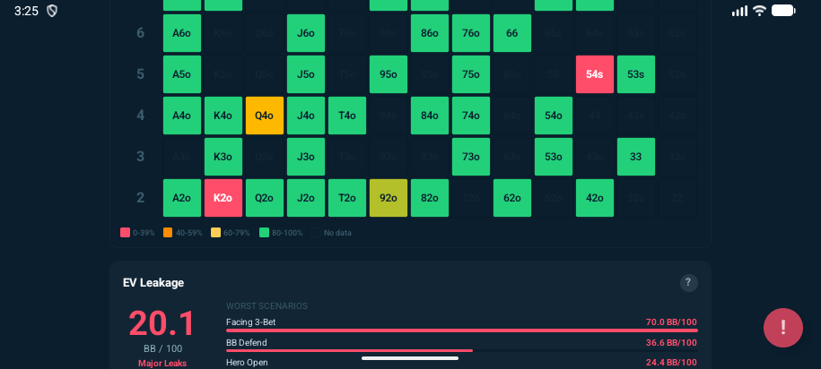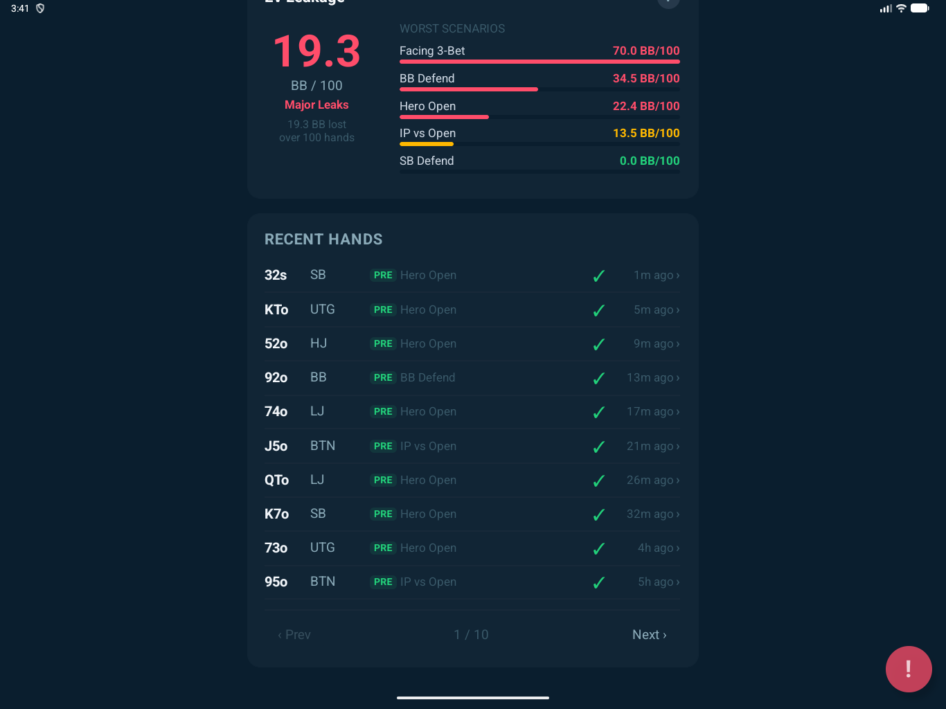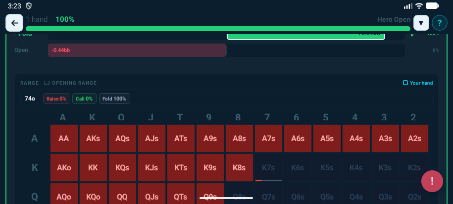 Poker Guide tablet landscape — content left-aligned, empty right — affected: