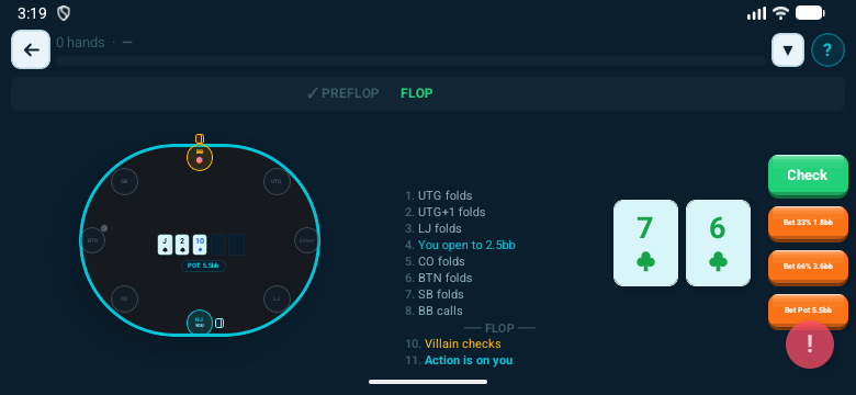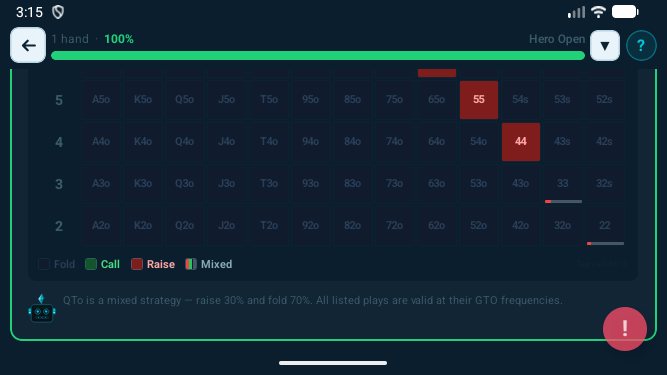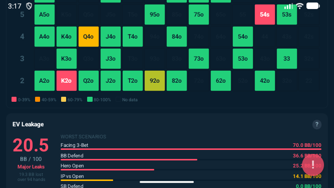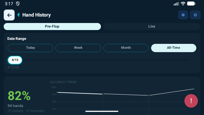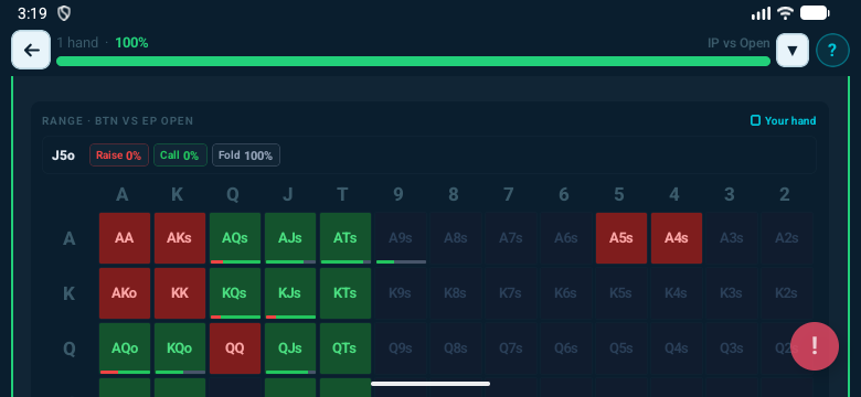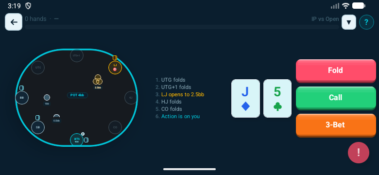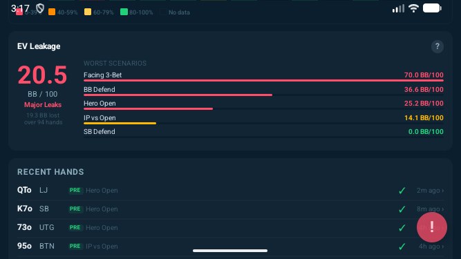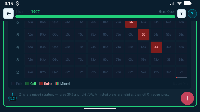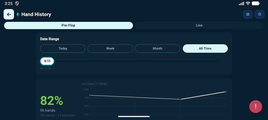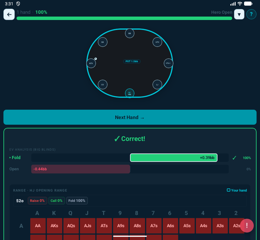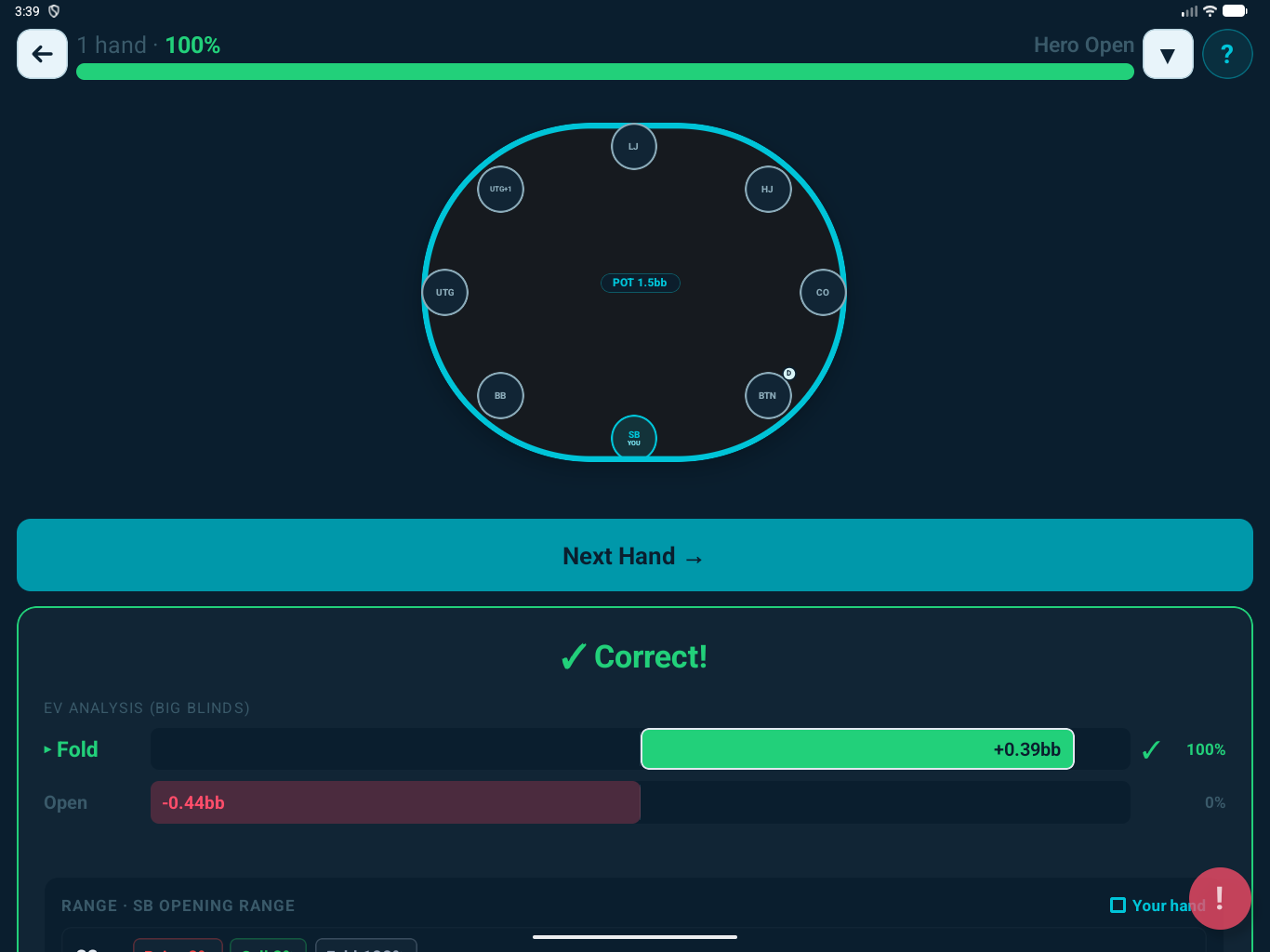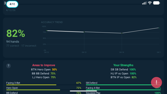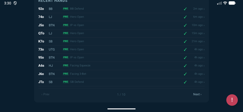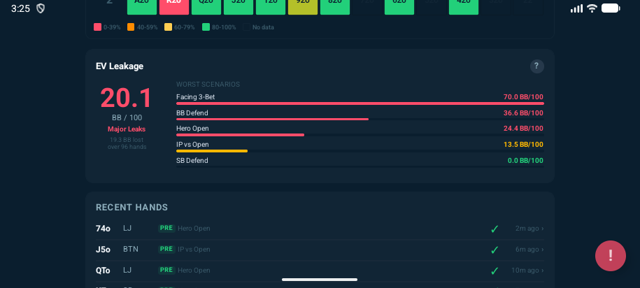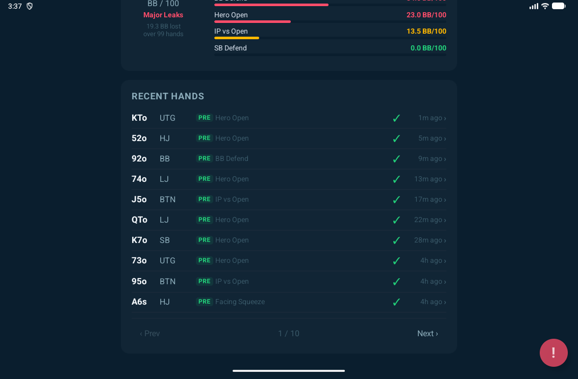 Poker Guide tablet landscape — content left-aligned, empty right — affected: